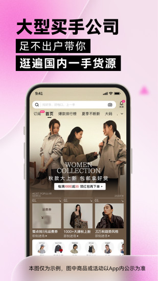 一手网,深耕服装批发行业8年+,专业买手团队带你足不出户逛遍全国一手货源! 【现货免排单】一手女装批发,趋势尖货,现货专区24H发货; 【一件起批】二批和一批都是5件/10件起批,而一手是店主拼单一件起批,一件代发; 【首单红包】领取首单红包; 【差异货品】为解决你所在商圈同质化货品问题,一手网提供各地一批市场的货源,款式丰富可以让你的货品更具竞争力; 【随时补货】二批和一批都有拿货门槛,而一手上一件起批可补一件,减少压货成本; 【拒绝散客】批发市场有散客购买,但一手有拒绝散客的功能让你拿货更放心。 【一手优势】 海量新款:汇聚市场源头货,新款天天更; 拿货价低:比二批市场便宜30%+; 售后服务:售后客服实时在线,提供多角度解答; 同行交流:优质店主学习群,畅聊生意经; 更多功能:支持以图搜款、一键下载素材、批量下单等。 【联系我们】 微信公众号:一手女装批发网(微信id:yishouapp)