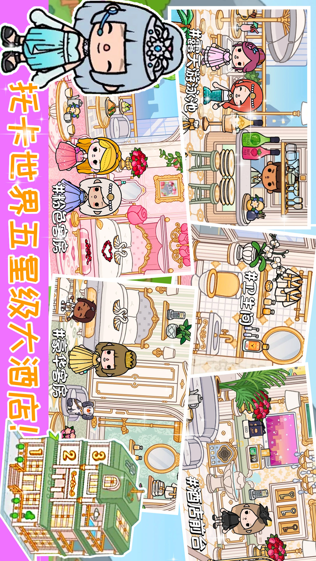 《托卡世界版》是一款超级游戏程序,你可以在这里创建自己的世界,并表演你喜欢的任何故事。我们少会推出70个地点,140个角色,150只宠物,700套衣服裤子和更多的配饰;我们会在每个月进行更新,或推出更多的地点,让你创建属于自己的世界! 在不同场景展开旅程,精美套装结合剧情场景!打造小镇世界! 上新豌豆农舍庄园三层别墅、豌豆花园、农场! ok街高中校园、摩可可梦幻公主皇宫、摩可可豪华城堡粉红别墅、莉莉斯王国游乐园、爱丽丝魔法学校、家具店、玫瑰服装城,等等…… 游戏亮点: 1、探索模拟的玩法,玩家在应用中将自己的想法可以尽情的表达,体验出应用的休闲; 2、这里面有上百亿种自由的组合,所以玩家在体验的时候可以尽情的创新; 3、完全自定义的发型、衣服和妆容,让你自定义出真实的自我,创作属于自己的故事。 游戏特点: 1.玩家可以在托卡世界中进行深度探索,并且能在这里做任何自己想做的事,没有人可以限制你。 2.游戏的玩法开放程度非常高,并且非常注重于玩家们之间的互动交流,虽然是一个虚拟的世界,但是这个世界是大家心中完美的梦幻世界。 3.轻松添加新地点和角色,到处都有各种内容、角色以及可以做的趣事。 4.在游戏之中你将来到这个庞大的世界,你可以探索各种未知的地图,装饰你的房屋和场景,还可以解锁更多的服饰、道具。 游戏攻略: ①理发店的那些彩色瓶瓶其实是染发剂啦; ②男孩子居然可以穿裙子; ③小吃街的食物都可以包装起来,拆包装盒还会有一些残留纸屑(很好清理的); ④超市的任意两种食物都可以配在一起,但只有一些可以拿来当菜:例如玉米饼和猪肉可以变成玉米肉饼; ⑤点一下公寓的沙发可以变成床,能睡两个人哦~ ⑥邮局有礼物拿哦~ ⑦点一下太阳可以变成月亮; ⑧衣服坏了,破了 可以拿去衣服店给那个裁缝奶奶修; 后说一下假期: ①沙滩左边的荷花,点一下,有一个小精灵出来了; ②可以往宾馆里的厕所里扔东西(啥都可以); ③沙滩右边有个小岛,有一个宝箱的,可以把它挖出来; ④去酒店卖礼物那里,那里不是有个章鱼拿着冰棍和热狗吗?点2下冰棍热狗,点一下章鱼,有礼物可以拿; ⑤小岛旁边有充气船,人可以坐上去。充气船旁边有个红色的,把它放到船上,点击它,加快速度了! ⑥飞机上有狗,带着帽,可以喂他东西吃哦; ⑦在机场上,有个自动售卖机,里面有个小东西,,点它可以把它放出来(只有一个)。