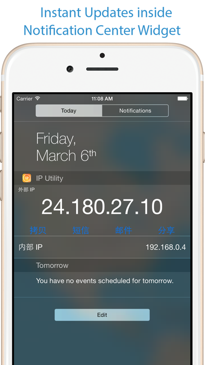 “我的连接” - 显示当前的连接状态,公共IP,DNS服务器IP,Wi-Fi和蜂窝网络信息。 “我的IP地理位置” - 一简单的方式来接收您的公共IP地理位置,如国家,城市,邮政编码,互联网服务提供商(ISP)和计算的位置坐标。计算的位置坐标具有高精度。 “IPv4信息” – 提供有关世界上任何公共IP的信息,包括计算的位置,服务区域,ISP名称,自治系统号数(ASN),公告等。 “网络字冠信息” – 提供公开互联网所有IP字冠的信息,并与ISP相关联。 “ASN信息” - 显示全球ASN的任何统计信息,包括当前保留公共IP地址空间的详细信息,具有地图可视化的估计服务区域以及其他ISP的相邻连接。 “IPv4空间监控” - 提供区域互联网注册机构(RIR)之间公共IP地址的当前分配,利用和可用性的机遇。 'Bogon 字冠' - 提供所有公开的bogon路线列表以及相应的ASN。 “自制系统等级”- 按照IP地址容量显示自制系统等级 “TOR退出节点” - 显示网关列表,通过网关加密的TOR流量到达Internet。 “每个国家/地区的总算IP” - 按照公共IP的总体容量显示国家/地区排名。 “IPv4 Mapper” – 让使用户跟踪他的公共IP地址与地理定位变化并地图上显示此数据。 “Ping“– 检查互联网上任何主机的ICMP可达性。 “Traceroute” -兼有ASN数据,国家,公司名称。表格上与地图上可以看到数据。