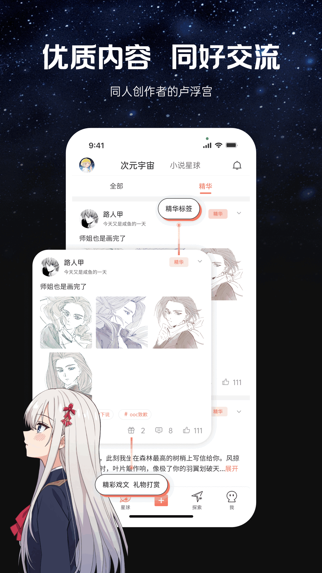 欢迎降临次元星APP—— <br>一个覆盖了游戏、动漫、小说、明星、OC、绘画、影视剧等全象限匿名语C沉浸式角色扮演社区APP。无论你是语C玩家、同人创作者、戏精、梦女、捡手机文学爱好者,还是动漫(如《魔道祖师》《鬼灭之刃》《排球少年》等)、游戏(如《王者荣耀》《第五人格》等)、影视剧(如《狂飙》《猎罪图鉴》等)的发烧友,在这里都能尽情对戏、交友、沉浸式浏览创作。请选择你的初始身份载入:宇宙流浪体、超异能族、权力斗争的陪葬品、冷宫中发疯的妃子、古风小生......在这里你可以是任何形象,任何身份。请尽情享受激情澎湃的头脑风暴以及灵魂共鸣的社交乐趣。<br><br>【启动任务:定位你的兴趣星球】<br>我们的系统能根据你喜爱的IP,或你的OC(原创角色)标签,将你瞬间传送到对应社群。热门领域应有尽有,冷门北极圈也有专属共鸣站,精准匹配,拒绝孤岛。每颗IP星球都有独立生态,请自由探索,或许会触发隐藏彩蛋噢。<br>你无需再在广袤的互联网流浪。<br><br>【核心装备:创世者工坊】<br>在 「同人创作结界」 中,你可产出亦可浏览:<br>· 叙事型装备:戏文、小说、剧本<br>· 视觉型装备:捡手机、OC人物卡、对戏话本<br>· 声景型装备:语音剧场<br>系统已加载 【原创保护结界】,全程记录你的创作轨迹。更配备 “神评共鸣仪” 及 “礼物打赏通道”,让你的每一次创造,都能收获真实世界的能量反馈。<br>你的灵感,不仅是宇宙中漂泊的资源,更是建设星球的工具。<br><br>【匹配协议:灵魂共鸣透镜】<br>输入你的身份标签——IP角色或OC,立即扫描全场契合度。自动连接 “戏搭子”,开启专属对戏频道。从此,扩列不是概率,缘分成为必然。人海茫茫,系统为你装备 【精准匹配多棱镜】。<br>所有巧合的相遇,其实都是久别重逢。<br><br>【彩蛋程式:头号玩家沉浸探索】<br>担心水聊淹没好戏?专属【戏台子模式】一键切换 “皮上”(角色状态)与 “皮下”(本我状态),让创作与社交并行不悖。此外,系统随机掉落:<br>· 被时间掌控的礼物<br>· 奇遇事件簿<br>· 专属向导吉祥物<br>更多彩蛋,等待你在次元宇宙的穿梭中自行解锁。<br><br>【登录指引】<br>如果尚未载入此宇宙,可通过官方渠道获取密钥:<br>QQ共鸣频段①群:1047961959<br><br>▶ 现在,按下登录键。<br>▷ 次元星,等待你的领域展开。