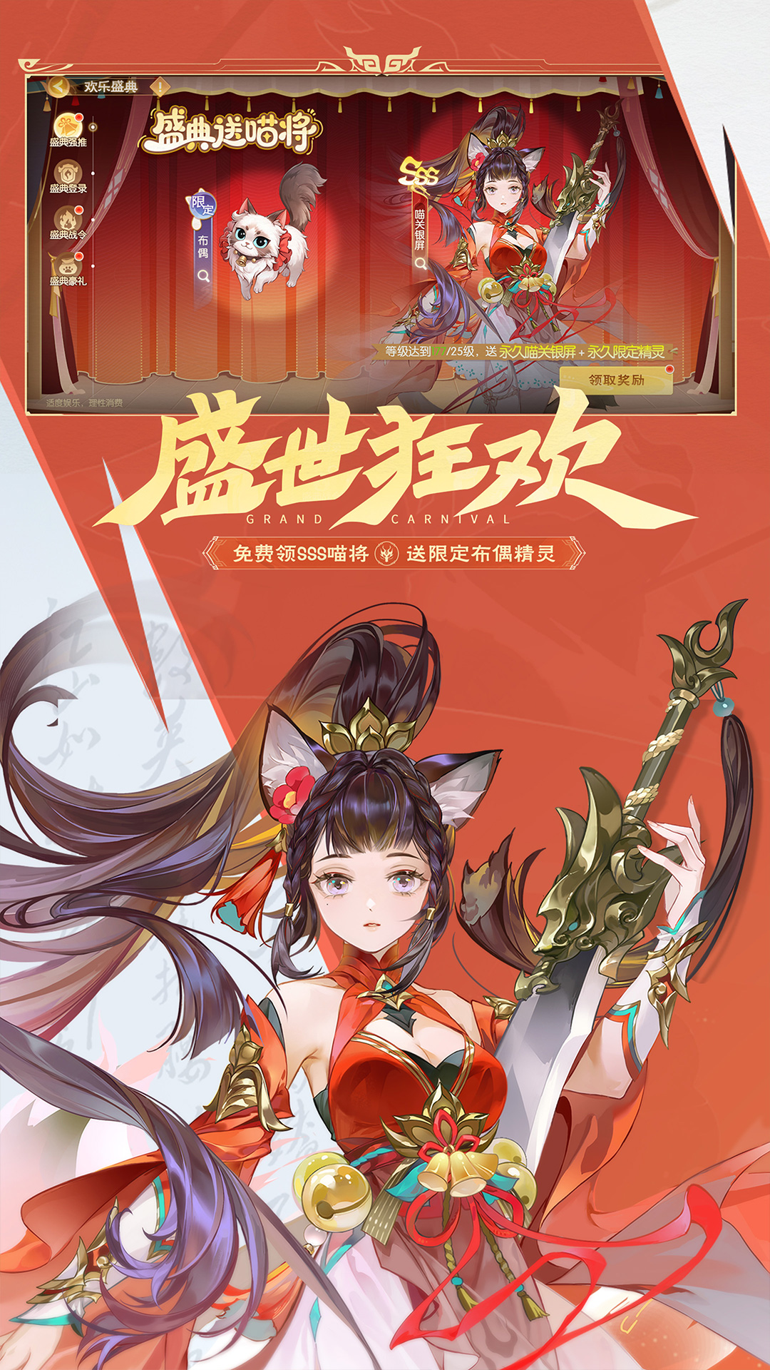 >>官方正版,新手登录送神将<br>>>Q版国风,武将重铸再加强<br>>>与喵同行,种菜养猫轻松躺平<br><br>【游戏介绍】<br>《欢乐三国杀》是一款全新的三国杀正版手游。登录免费送神将!Q版国风画风升级,喵将驾到萌翻全场;特色家园系统,放置挂机,轻松养成专属猫咪;沉浸体验三国历史,征战推图,一键收奖励;三国名将集体重铸再加强,随时随地杀一局!<br><br>【游戏特色】<br>1、特色武将,全新武将系列<br>原创“喵”“战”“念”系列武将,特色武将专属技能机制,趣味设计策略升级,经典武将重铸再加强,三国无废将,猫在一起欢乐开杀!<br><br>2、专属精灵家园,躺平无限发育<br>打造独一无二的专属家园,好友互动乐不停!游戏首次尝试在三国杀中加入模拟经营玩法,6级开放家园系统,领取专属于你的萌猫精灵,升级解锁特定新技能,在牌局中携带精灵助阵,对局更轻松!精心打理你的水果农场,合成优质品种,兑换丰富游戏道具!<br><br>3、登录送神诸葛,活跃得界徐盛<br>三国武将Q萌上阵,登录福利一键拉满!登录次日领取SP赵云,登录三日送界黄忠,登录7天即可领取神诸葛亮,参与7日礼得界徐盛,在线期间赠送大量招募令,2V2排位、乱斗、斗地主、爬塔模式应有尽有,段位越高,奖励越丰富,与好友随时随地组队开黑。<br><br>4、挂机推图,减负护肝最下饭<br>乱世三国,豪杰英勇出征!在征战模式中感受三国历史,并加入离线挂机模式,轻松推图无负担,放置也能领取银两、将魂和经验!