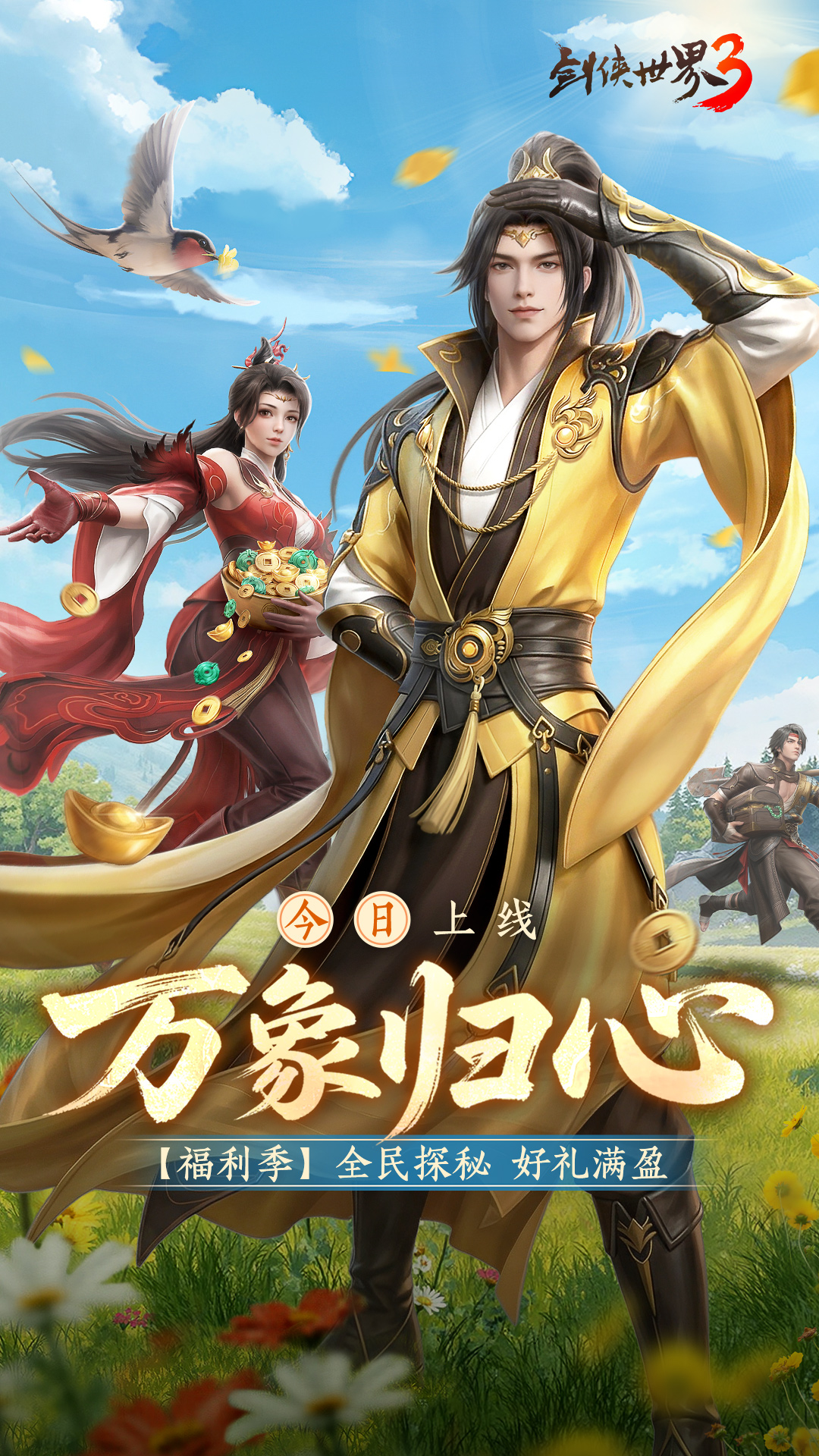 《剑侠世界3》是西山居打造的剑侠情缘系列MMO手游。游戏以南宋为背景,玩家作为一名江湖侠客拯救南宋危机。传承“剑侠情缘”端游和手游的经典玩法,比如沙盘城战、宋金战场、团队副本、萌宠养成、五行相克,还有面对面交易、拍卖分元宝。基于全新3D引擎,设计捏脸和时装定义自我。御雕轻功,24小时晴雨雪风和昼夜,打造恢宏的武侠大世界。亿万剑侠的真江湖,重回剑侠,快意恩仇!<br><br>————游戏特色————<br>全新资料片,玩法大升级<br>开放炽霄、神威、段氏、玄机、明教等十九个新门派。心境玩法深化养成,再启新篇,万象探秘,全民参与探宝赢豪华大奖!双重豪礼来就送!高品质坐骑上新,还有GVG 巅峰团战「夺关问鼎」上线!随机分营,攻守激战!与盟友并肩决胜于枫林古阵战场,以实力迎敌,以策略制胜,共逐巅峰!<br>传承“剑侠情缘”系列 <br>重回南宋,续写剑侠新篇章,追随杨影枫、独孤剑等大侠,行侠仗义。全新推出炽霄、神威,重新设计段氏、玄机、明教、霸刀、藏剑等门派,体验热血城战、团队副本、野外首领等玩法,重温剑侠情怀。<br><br>千人角色同屏,超燃团战 <br>热血家族攻城、争夺野外首领,同屏团战显示全部角色模型,不再是屏蔽模型的名字大战,敌我出招清晰可见,体验从未有过的爽快PK。<br><br>面对面交易,拍卖分元宝<br>面对面交易多种道具和货币,开放经济让利玩家。家族玩法产出的道具均需拍卖,拍卖所得元宝均分给家族成员,每天可分得上千元宝。<br><br>高画质,武侠大世界 <br>基于全新3D引擎,设计多维捏脸和丰富外观,行走江湖与众不同。御雕大轻功,24小时晴雨雪风和昼夜,打造恢宏的武侠大世界。<br><br>五行相克,搭配技能套路<br>传承经典剑侠的金木水火土五行相克,搭配技能组合,多种技能控制和解招机制。你可以在竞技中秀出操作,甚至能在绝境中极限反杀。