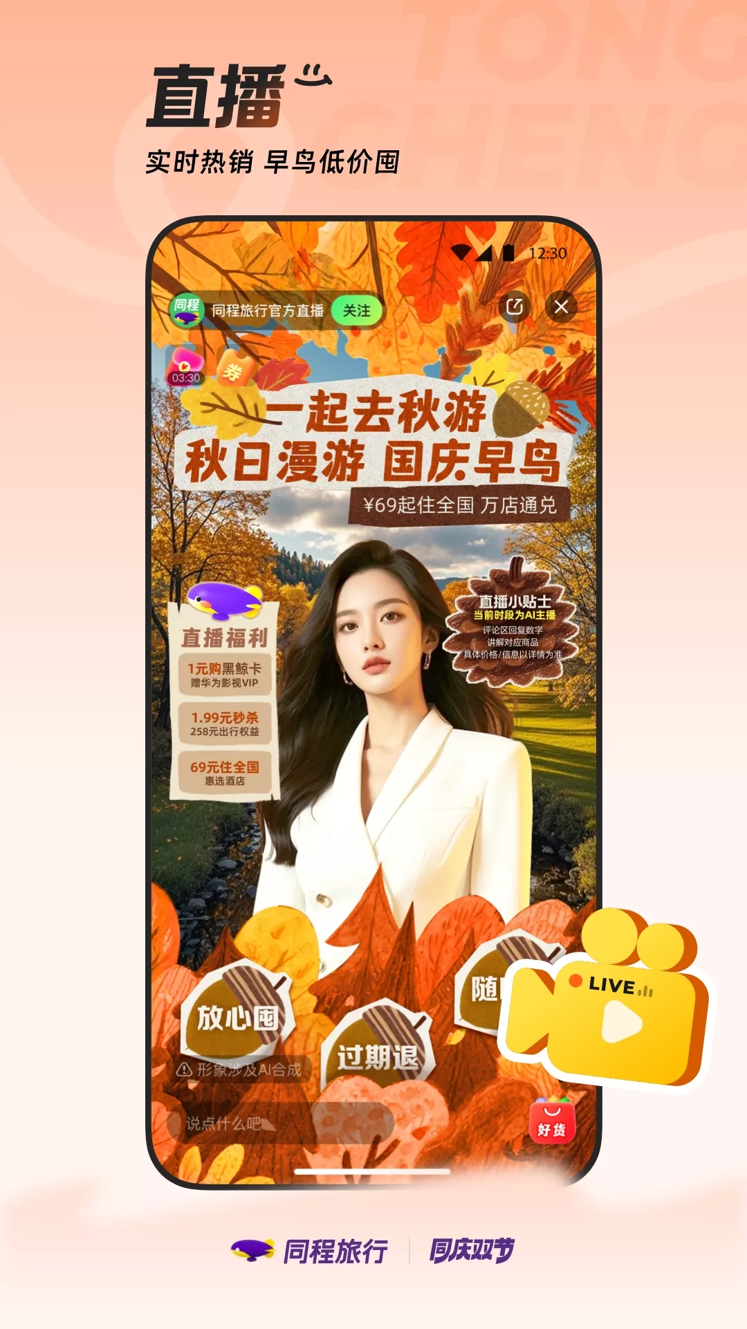 同程旅行,新一代旅行平台。 作为中国的优质在线旅行服务提供商之一,为2亿用户随时随地提供专业的机票、酒店、火车票、汽车票、门票、国内外度假线路等全方面旅游产品的在线预订服务,让用户享受更便捷、更舒适的旅行。 【产品功能】 1、新客礼包:同程旅行APP新用户可在同程APP内参与领取新客大礼包,内含国内机票、火车票、国内酒店、景点门票、汽车票、打车等新客专享红包,先领券再下单更划算,详情以活动内规则为准。 2、火车票:购票便捷,支持在线抢票、在线选座;票种多样,支持成人票、儿童票、学生票;智慧出行,智能推荐火车中转、多买几站、同车换乘等出行方式。 3、酒店:百万家酒店覆盖国内海外,钟点房/品牌连锁/民宿等多形态应有尽有,亲子/差旅/度假等多场景一应俱全。 4、机票:特价机票天天有,最低1折起;价格透明,大额优惠券天天领;免费选座,在线值机,随时掌控航班最新状态;线上退改更便捷,退改签不收取额外费用。 5、门票:全国海量景点优惠订,特价门票5折起;极速出票快乐游,免票入园不排队,无忧退订有保障;支持在线预约,无接触式购票安心游! 6、打车:一键呼叫全网打车平台,享受省心、便捷、快速、安全的