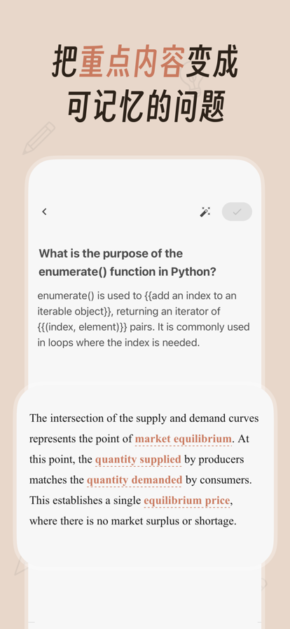 为什么选择 Noolingo? noolingo是一款革命性的 AI 驱动卡片笔记工具,它不仅仅是一个记录工具,更是你的私人智能助教。我们深知“学完就忘”的痛苦,因此将主动回忆 (Active Recall) 与 间隔重复 (Spaced Repetition) 深度集成,助你利用碎片时间实现学习效率的飞跃。 核心功能亮点 无需复杂的制卡流程。在笔记中简单标记或使用 AI 一键识别,即可生成填空式闪卡。配合 AI 助手,重点内容无所遁形。 集成全球领先 AI 模型,根据你的笔记内容和学习薄弱点,自动生成个性化题目。不仅考记忆,更考理解,助你举一反三。 独创颜色管理系统,掌握程度一目了然。科学的复习提醒,让你在最该复习的时候收到通知,拒绝盲目刷题。 医学图谱、法律框架、地理地图?直接导入图片,在关键部位绘制挖空,让图形记忆变得轻松有趣。 内置高质量语音朗读(TTS)与听写模式。通勤、健身时也能“听”笔记,全方位强化感官记忆。 支持 iPhone, iPad, Windows, Linux 及网页端。数据云端同步,学习进度永不丢失。 支持 Anki (*.apkg) 文件及 Markdown、大纲笔记等多种格式导入,轻松构建你的个人知识库。 适用人群 考试党:考研、考公、考编、医考、法考、教资备考。 语言学习者:雅思、托福、四六级、日语、法语词汇积累。 终身学习者:读书笔记、技能学习、日常灵感捕捉 让「noolingo」成为你可靠的知识管理助手,把低效学习变成过去式。 如有任何疑问,欢迎邮件 support@noolingo.com 本服务受 Apple《最终用户许可协议》(EULA)的约束。