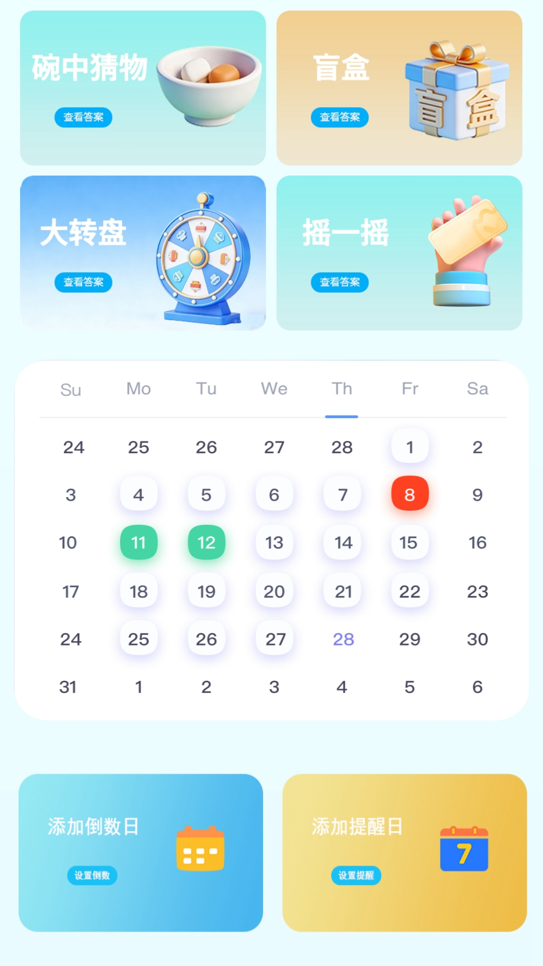 游戏盒子是一款轻量有趣的休闲与娱乐合集。 相机:趣味抓拍,记录瞬间; 日历:实用便捷,贴心相伴。 碗中猜物:趣味竞猜,惊喜满满; 盲盒:开箱即乐,福利多多; 大转盘:转出好运,快乐不停; 摇一摇:轻松互动,解压好玩; 小巧好用,娱乐生活两不误。