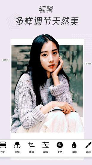 一款集相机、滤镜、拼图、贴纸和添加文字于一身的图片处理工具。多款光效滤镜和萌趣贴纸字体,高清画质保存,清晰展现每张美图,享受做图的乐趣。 主要功能: 照片拼图:海量独家模版,支持多张照片拼图,模版拼图,独创“融合”,随意更改模版布局,边框,比例,滤镜,贴纸。自由拼图,随意添加照片、文字、贴纸,支持自动布局,可制作出理想的拼贴画或海报效果 滤镜相机:直接拍出带滤镜处理的图片,更有多款“光效”滤镜给图片增加自然的光影效果 编辑照片和视频、使用我们的贴纸制作器和拼贴画制作器、在照片上涂鸦、还可以做更多的事情。 不需要任何专业知识即可上手 图片编辑:调色,裁剪,贴纸,美体,笔刷,增强照片效果,营造独特风格。 成就你的大师梦,让你的照片更加艺术。