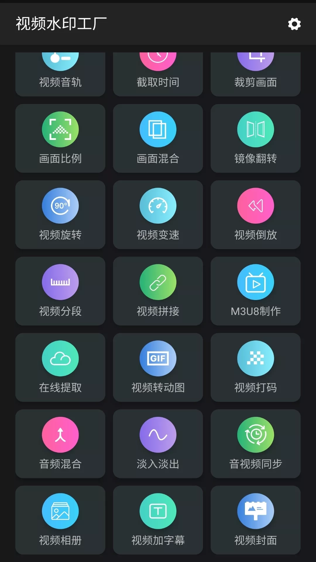 视频水印工厂是一款功能强大格式齐全的短视频编辑工具,能够出色的完成一些常用的短视频处理剪辑方面的工作,操作简单方便,助您快速的完成短视频制作。 软件包含功能有:格式转换、去除水印、添加水印、视频音轨、视频截取、视频裁剪、画面调整、视频翻转、视频旋转、视频变速、视频倒放、视频分段、视频拼接、M3U8制作、视频在线提取、视频转动图、视频打码、画面混合、音频混合、淡入淡出、音视频同步、照片转视频、视频加字幕、视频封面制作等功能。 目前支持的视频格式有:mp4/mkv/avi/3gp/3gpp/mov/m4v/mtv/flv/swf/webm/wmv/amv/mpg/vob/rm/rmvb/asf/asx/f4v/ts/m3u8/blv 格式转换:将视频转换为指定的格式 去除水印:去除短视频中的水印 添加水印:在短视频中添加自己的水印 视频音轨:添加或者删除视频中的音轨 视频截取:截取一段时间视频保存新的视频 视频裁剪:裁剪一段画面保存新的视频 画面调整:调整视频画面大小比例并填充颜色/照片/虚像 视频翻转:对视频进行上下/左右镜像翻转 视频旋转:对视频进行旋转,支持自定义角度 视频变速:调整视频播放速度 视频倒放:对视频进行倒序播放 视频分段:对视频进行切割分段,支持按照时间和个数分割 视频拼接:对多个视频进行拼接成一个新的视频 M3U8制作:将视频制作成M3U8分段格式 视频在线提取:从网页中提取、下载、录制视频 视频转动图:将视频转成GIF/APNG/WEBP格式的动画图片 视频打码:对视频和音频添加马赛克 画面混合:将两个视频的画面进行混合,实现画中画效果 音频混合:对视频中的音频进行混音 淡入淡出:对视频添加淡入淡出效果 音视频同步:同步音频和视频轨道 视频相册:将多张照片合并生成一个视频,且含有转场动画 视频加字幕:对视频添加字幕 视频封面:制作视频艺术家封面和缩略图