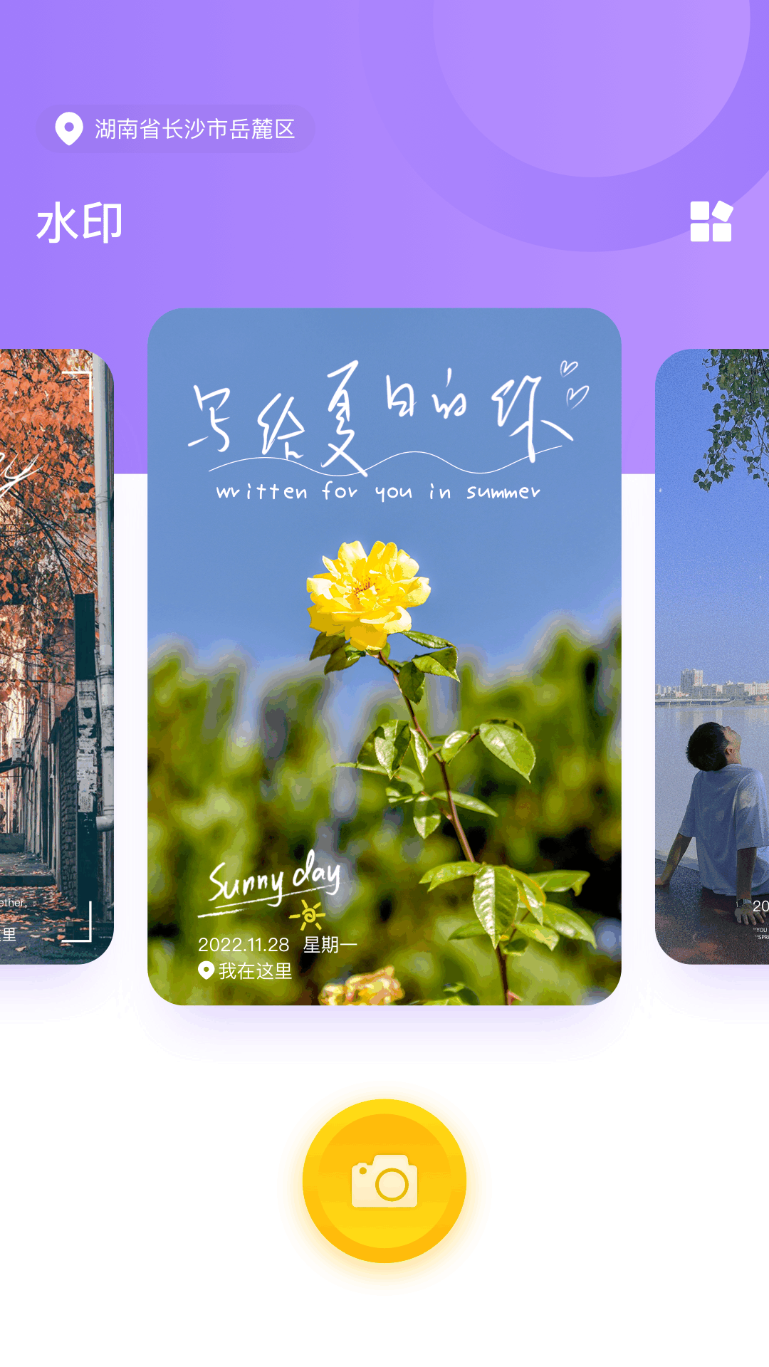 这是一款实时拍照快速添加水印的照片编辑神器。<br>主要功能:<br>【一键水印拍照】选好水印,一键拍照,水印照片自动生成。<br>【实时时间水印】实时获取当前时间作为水印。水印时间真实,防篡改。考勤打卡拍照、外勤出差拍照、工作问题拍照,一键搞定!<br>【丰富的水印模板】工作考勤、地点打卡、时间记录、天气变化、日常出行、生活纪念、旅途风景留念,多种水印模板随意选择。<br>【适用场景】工作记录拍照、建筑工程管理、物业工作记录、考勤打卡、微商加水印、外勤拍照、现场取证、晨会记录、执勤巡逻、旅行打卡。