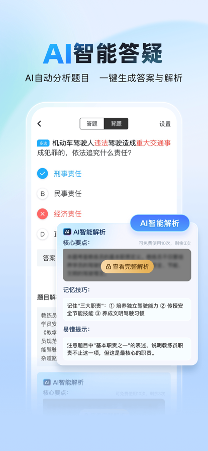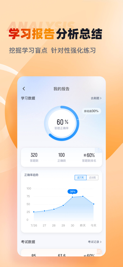 「考试宝典AI版」是一款面向多元化考试场景的智能刷题学习平台,通过大数据加AI大模型的技能组合,为不同学习需求的用户提供从题库建设到智能学习的高效学习方案。 【AI智能辅导】在学习的每个阶段深度融合AI技术,提供AI答题、AI解析、AI出题、AI讲题。 【题库全面】基于各大资格证考试大纲考的基础,通过大数据以及AI技术的加持,智能生成精简题库,智能总结知识点,智能生成个性化的学习计划。 【覆盖面广】考试资讯、题库覆盖一建、二建、公考、医考、教资、法考、考研、驾考、各类资格证……等诸多领域并还在不断扩充中。能有效满足学员全方面的学习需求。 【通过率预测】 在模拟考试结束后,软件通过智能分析,对学员当前通过考试通过率进行预测,便于学员及时调整学习策略。