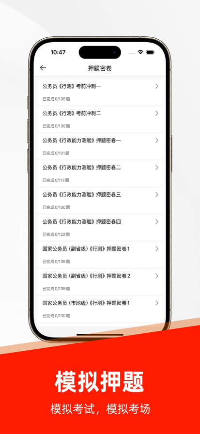 公务员行测申论公考真题库是经过两年研发,专门为公务员考生打造的上岸利器! 真题演练:真题整卷练习 错题复习:系统自动记录用户错题,可针对错题生成练习 收藏练习:用户主动收藏经典题目,可针对收藏生成练习