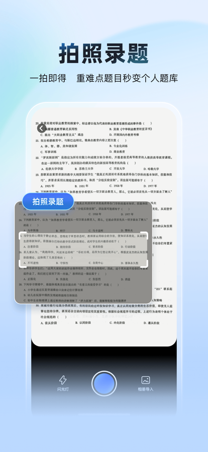考试通过的秘籍就是刷题,没有坚持刷题过不了考试,如果有,那是你没有下载教师资格证考试题库! 教师资格证考试题库题库是一款随时随地可用的智能高效刷题软件。考生可通过设置备考目标,快速开启高效提分计划。同时我们拥有超大型在线题库,主要功能包括章节练习、随机练习、高频考题、历年真题,模拟考试等多种形式,让学生边学边练,达到进一步巩固学习效果的目的。在考前冲刺阶段还有考前模拟试题,帮助学员模拟实战,把握考试精髓,增加考试通过率。 【功能特点】 1、章节练习:按章节巩固练习,逐个击破,去掉“短板” 2、高频考题/错题:把握高频,赢在效率 3、模拟考试:熟悉大纲,少走弯路,举一反三,事半功倍 4、历年真题:收录多年真题,历史总是惊人的相似! 5、考前押题:押的“考点”约等于“考题” 【关注我们】 若您发现任何问题,或者有好的建议,欢迎和app内联系我们模块和我们沟通!