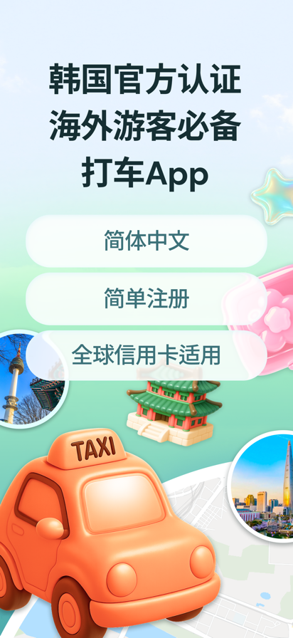 TABA:首尔市政府与T-Money官方合作,专为海外游客打造,提供安全、便捷、经济的韩国出租车服务。 简体中文支持:界面、地址搜索、客服全中文,无语言障碍,安心叫车! 简单注册:支持全球手机号、Google邮箱、Apple账号注册,一键注册超简单! 支持全球信用卡:支持 中国银联(UnionPay)、Visa、Mastercard、JCB、American Express、Discover、Diners Club。 多种出行服务:机场、市区、跨城接送,一站式搞定! 多种车型:标准 4 人座、豪华 4 人座、宽敞 5 人座,灵活选择更舒适。 智能调度:精准匹配附近司机,提供最佳路线。 景点探索:轻松搜索景点、美食、购物等热门地点,一键叫车直达。 中文客服支持:快速响应,贴心帮助,让旅程更安心!