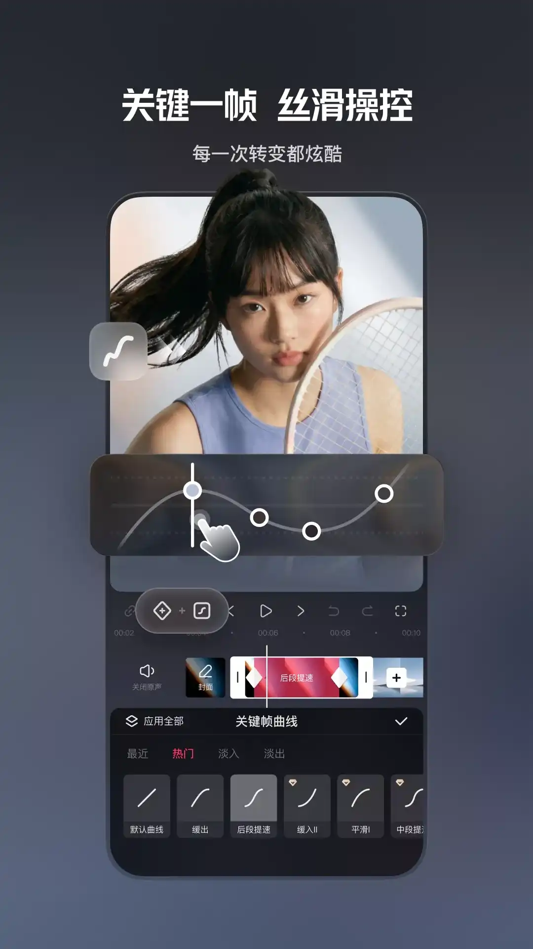 快影是一款专业简单易上手的视频剪辑应用,提供了丰富实用的功能,帮助用户轻松制作出高质量的视频作品。 亮点介绍: 【AI文案成片】:DeepSeek R1满血版免费用!提供视频文案撰写,文案改写润色功能;支持从文案直接生成视频,快速打造爆款内容 【AI视频动漫】上传人物视频,智能生成动漫效果;打造专属虚拟形象 【AI文生图】:输入描述词,选择图片风格,AI即可生成想要的图片 【AI绘画】:上传初始图片,选择风格玩法,AI即可生成新的效果图,支持为效果图增加关键词描述 【创作中心】协助解决运营账号痛点,为创作者推荐源源不断的创作灵感,破解粉丝偏好,助推实现账号涨粉 【强大素材库】贴纸、滤镜、画面特效、热梗… 海量素材紧跟流行趋势,网感素材一键UP 功能说明: 多种视频剪辑功能,包括视频分割、裁剪、拼接、倒放、添加常规/曲线/自定义变速、转场、添加封面和片尾等,帮助用户快速完成视频剪辑。 丰富的音效和音乐库,包括文字智能配音、语音加字幕、提取音频、降噪模式、音乐卡点等,让用户轻松添加各种音效和音乐,让视频更加生动有趣。 多种字幕选择和滤镜、美颜、视频背景、画中画、智能抠像等功能,让用户可以轻松制作出更加精美的视频作品。 海量模板涵盖多用户群体的风格选择,一键剪出同款火爆网络的短视频,助推作品上热门。