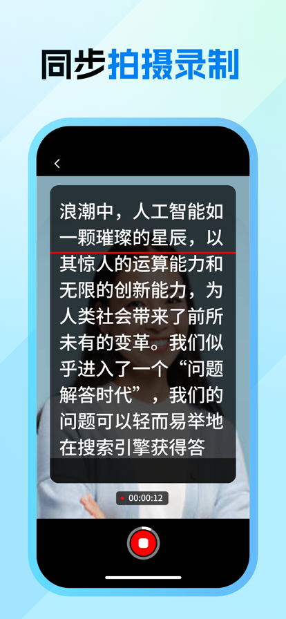 灵敢提词器是一款全能的AI口播创作助手,各大平台主播博主都在用的提词神器!让你从此没有忘词烦恼,台词视频录制一遍过。 灵敢提词器集AI写台词、AI对口型视频、文案提取、热门台词库等特色功能,助您提高创作效率和质量。 ———核心功能——— 【直播助手】多设备互联,远程控制提词板滚动及台词修改 【AI语速跟随】智能识别语速,让台词滚动与录制语速同步,让视频录制更专注 【AI 写台词】输入创作关键词与具体要求,就能快速生成贴合需求的台词 【AI 对口型视频】视频模板 + 台词配音,高效产出超真实的口播视频 【悬浮窗提词】提词板悬浮于app之上,可配合任一美颜拍摄软件使用, 【自动加字幕】高效的字幕识别算法,一键为视频添加字幕,大幅节省时间 【自定义设置】提词板的宽窄大小、字体大小和颜色、台词滚动速度、背景透明度均支持自定义,支持横竖屏切换 【多种输入方式】多格式文档导入,支持拍照扫描、语音输入、图片/视频等台词输入 会员协议:https://base.quthing.com/base/agreement/vip.html?appPackage=teleprompter_ios&appChannel=AppStore 隐私协议:https://base.quthing.com/base/agreement/privacy.html?appPackage=teleprompter_ios&appChannel=AppStore 用户协议:https://base.quthing.com/base/agreement/user.html?appPackage=teleprompter_ios&appChannel=AppStore