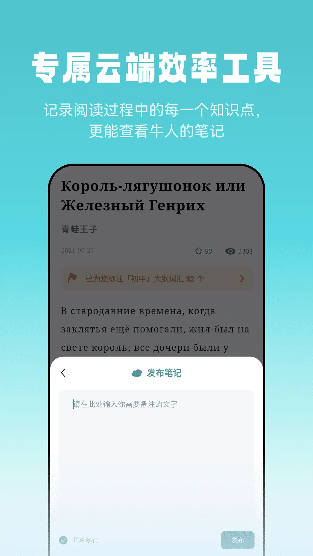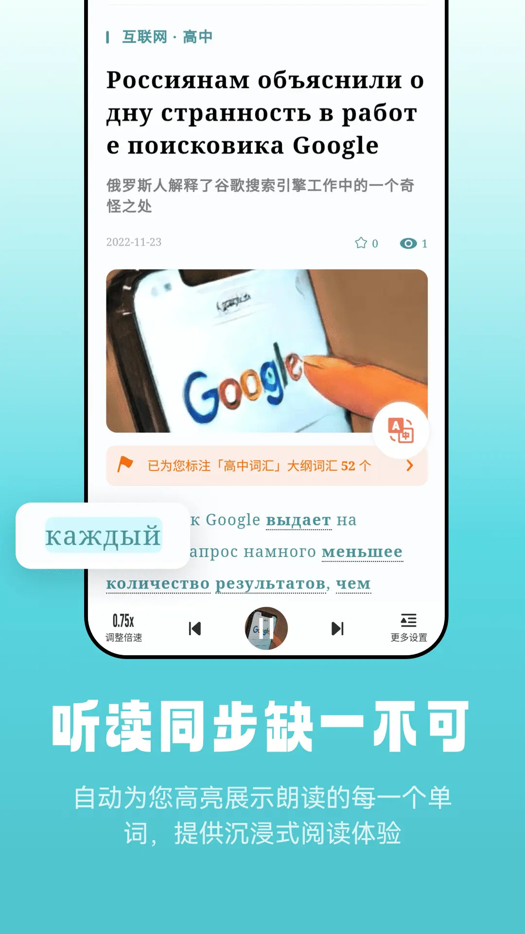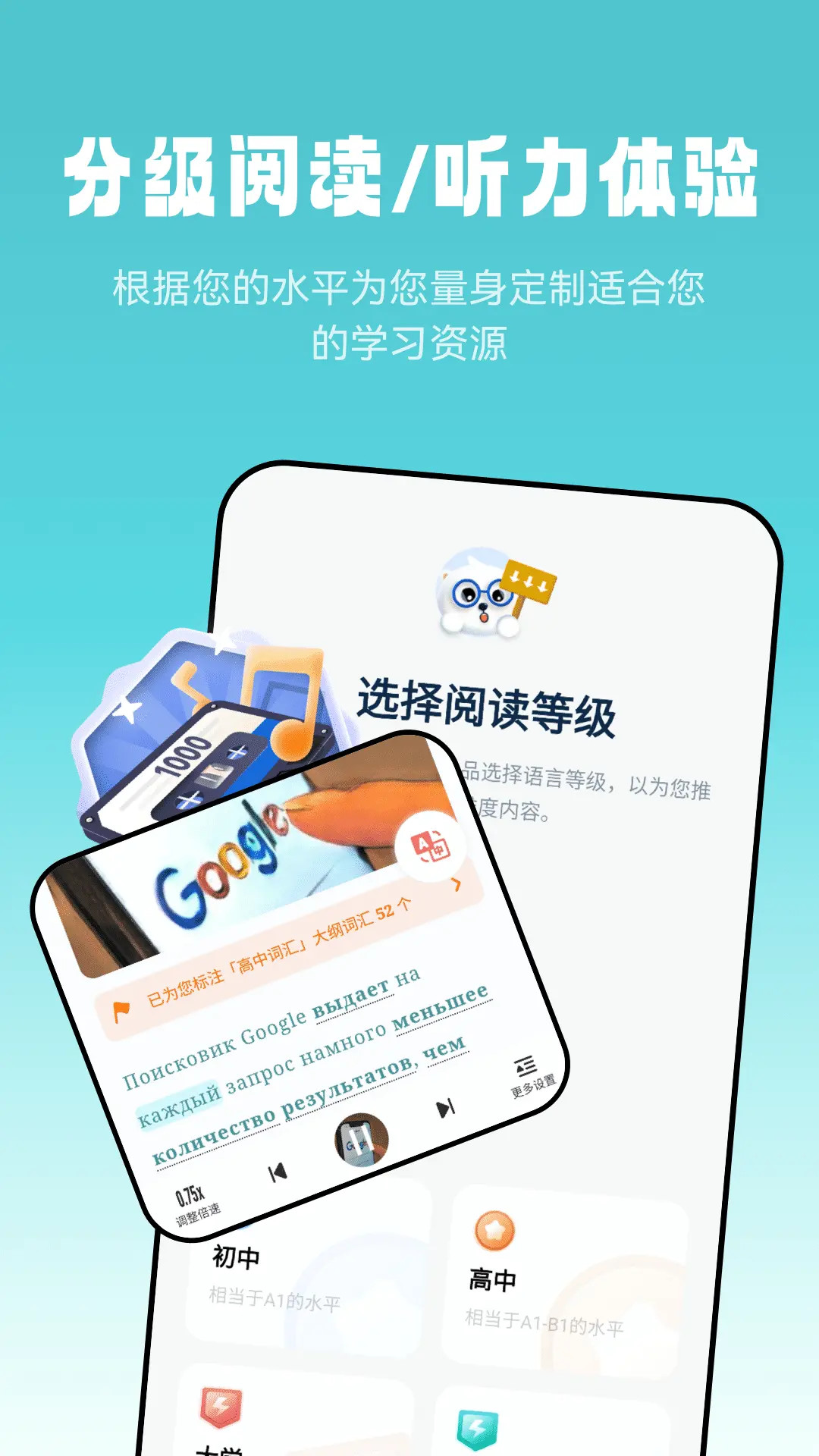 《莱特俄语听力阅读》是学习俄语高效的阅读和听力软件 - 拥有及时更新的海量阅读和听力库,并提供智能语音高亮跟随功能。 - 与《莱特俄语学习背单词》无缝集成,查词典、背单词轻松搞定。 - 全新艾宾浩斯和人工智能练习模式,让你训练阅读听力的同时不知不觉增加俄语词汇量 - 经典的俄语名著,匹配您俄语水平的分级阅读,无论入门还是高阶,俄语阅读听力高效学习助手 【体贴的操作方式】 - 创新的点词搜索功能,对文章中的单词即指即译 - 支持等级词汇高亮显示,显著提升单词量 - 支持等级词汇详解,提供翻译参考,阅读更高效 - 指出标注《莱特俄语学习背单词》里的词书单词,背单词和阅读听力同步学习,事半功倍 【与《莱特俄语学习背单词》无缝集成】 - 《莱特俄语学习背单词》是权威的俄语学习背单词软件 - 支持变格变位查询和反查 - 支持生词本、学习记录自动同步 - 支持单词复习记忆功能 【联系我们】 - 提交问题工单:软件内『我的』-『我的反馈』-『我要反馈』