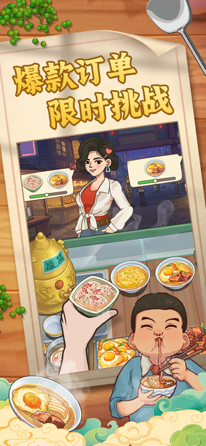 一切都从这家早餐店开始。 厌倦劳累又内卷的搬砖生活,怀揣美食梦想的你来到了这座新的城市,决定开始你的新的人生。 从小做起。租了辆早餐车,你开始了美食事业的第一步,暗暗下了决心要努力经营好自己的第一家店。每天的起早贪黑,虽然累,但能做自己喜欢的事,与小区的居民们分享美食,听他们聊八卦,仍旧感到了无比的快乐。 凭借着用心,不少居民很快都成了你的小店常客,也慢慢成为了朋友。1号楼每天早起锻炼的王大爷不爱吃葱,3号楼经常加班的年轻上班族小西爱喝奶茶,还有经常光顾的外卖员小杰哥总要加特辣......靠着口碑和慢慢积累的人气,小店的生意蒸蒸日上,你决定开拓新的领域,和大家分享更多你喜爱的美食。 小笼包、豆浆油条、牛肉拉面、番茄蛋盖浇饭、臭豆腐、小龙虾、烧烤等等,从早餐车做到了小吃铺、社区餐馆,新事业正在不断拓展。 游戏特色 - 操作简单,点击屏幕即可制作、搭配丰富美食,轻松经营餐厅,享受做饭开店的乐趣; - 烧烤、麻辣烫、酸辣粉、小龙虾、奶茶等等,超多热门美食和国民小吃料理; - 餐车、小吃铺、烧烤摊、奶茶店,独具特色的店铺餐厅设计和烹饪经营体验; - 春节、元宵节、七夕节、中秋节等等,各种中国特色的传统节日活动和主题料理; - 不吃葱的王爷爷、爱奶茶的上班族小西、爱吃辣的外卖员小杰哥,可爱有趣的顾客和情节设计; - 不断更新扩张的美食地图和关卡,还有丰富有趣的烹饪道具; - 精美的卡通美术设计,对应每一家餐厅主题的独特背景音乐,享受轻松愉快的游戏体验。 联系我们 如果您在游戏中遇到任何问题,或者对我们有任何建议和意见,欢迎通过以下方式与我们联系交流: >游戏内「设置」-「帮助」-「联系我们」 >官方微博:@美食烹饪家手游