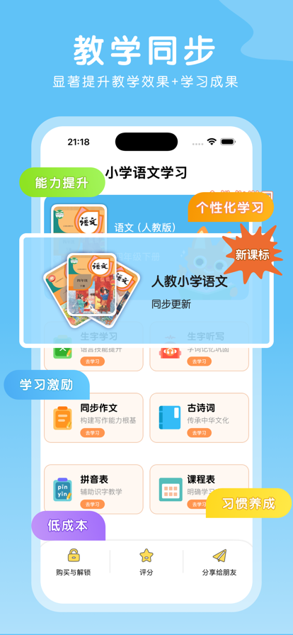 新起点学习机,是一款可随身携带的智能学习机,英语双语朗读、语文名师朗诵、数学思路讲解。完全同步课本教材,随时随地都可以学习。 ◆功能特色◆ - 同步课本教材,全面替代学习机! - 双语读音准确清晰,声声入耳! - 界面设计美观,做好每一个细节! - 可点可读,让孩子轻松学习! - 课表添加,及时预习课本内容! ◆联系我们◆ 如果您在使用本软件的过程中遇到无法解决的问题,可以随时联系我们: QQ:3447790034 我们致力于做最好的学习软件!