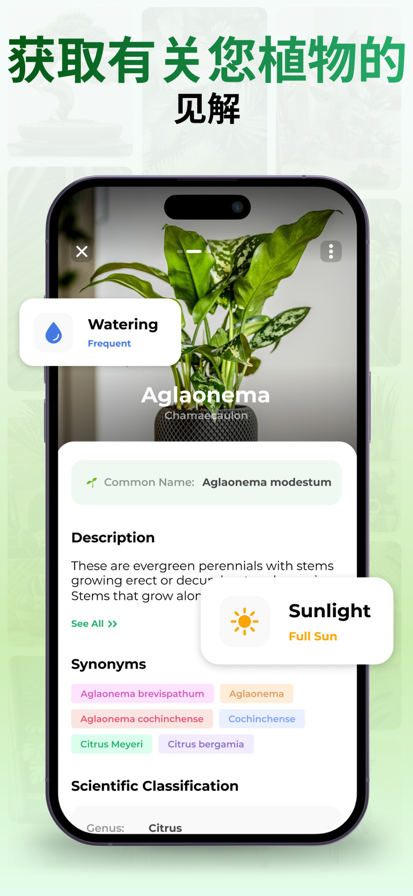 AI 植物识别器 - 发现、学习并呵护每一种植物 强大的 AI 植物识别器让您的手机变身口袋植物学家。无论您是园艺新手、植物爱好者还是专业人士,它都能帮助您探索自然世界,更好地呵护您的植物。 只需拍摄一张照片,几秒钟内即可获得花卉、蘑菇甚至珍稀物种的精确植物识别结果。不仅如此,我们的植物识别应用还提供专业的植物护理指南,帮助您保持植物健康茁壮。 即时识别任何植物 ◆ 将相机对准一片叶子、一朵花或一棵树,植物识别系统即可为您效劳。 ◆ 借助 AI 植物识别技术,高精度发现超过 30,000 种植物。 ◆ 随时随地识别室内植物、花园植物、室内植物和野生植物。 ◆ 从小草本植物到参天大树,您始终都能了解周围生长的植物。 无论您身在何处,无论是在花园、公园还是户外徒步旅行,这款植物识别应用都能让您轻松有趣地发现植物。 植物护理与病虫害防治 我们的应用不仅仅是植物识别,它还是您的私人园艺助手: ◆ 根据您植物的需求定制浇水提醒。 ◆ 每种植物的光照和温度要求。 ◆ 施肥和土壤建议。 ◆ 使用智能 AI 植物识别器即时检测植物病害。 ◆ 提供植物病虫害防治技巧。 有了详细的植物护理指导,您将始终掌握保持植物健康生长的正确步骤。 打造您自己的植物收藏 创建一个数字花园,保存您识别的每一株植物。整理您的发现,追踪植物生长情况,并随时重温您喜爱的植物。应用的植物 ID 功能还允许您添加提醒,让您永远不会忘记重要的植物护理任务。 为什么选择我们的 AI 植物识别器? ◆ 先进的 AI 植物识别算法,精准度更高。 ◆ 简洁明了的界面,适合所有年龄段的用户。 ◆ 可靠的数据库,包含数千种经过验证的植物品种。 ◆ 兼顾植物识别和植物护理,为您带来更多价值。 我们的植物识别器应用程序还会为您提供个性化的植物护理指导,无论是初学者还是园艺专家,都能轻松上手。 每天学习、探索、种植 只需几秒钟即可识别植物,让每一次散步都变成一次自然探险。 ◆ 了解有关花卉、树木和草本植物的有趣知识。 ◆ 通过循序渐进的植物护理知识,提升您的园艺知识。 ◆ 与亲朋好友分享您的植物发现。 从常见的室内植物到奇异的野花,人工智能植物识别器确保您不再为植物的名称或需求而感到困惑。 这款应用的目标用户: ◆ 需要精确植物识别和简单护理技巧的园丁。 ◆ 寻求快速可靠植物识别的学生和研究人员。 ◆ 想要探索公园、森林和步道的自然爱好者。 ◆ 想要更好地照料室内植物的房主。 无论您是在照料桌上的仙人掌,还是在探索森林小径,这款应用都是您唯一需要的免费植物识别工具。 立即开启您的植物之旅 免责声明:本应用提供基于人工智能的植物识别和养护技巧。结果可能并非 100% 准确;请务必咨询植物学家。 隐私政策 https://eclixtech.com/privacy-policy 服务条款 https://eclixtech.com/terms-service