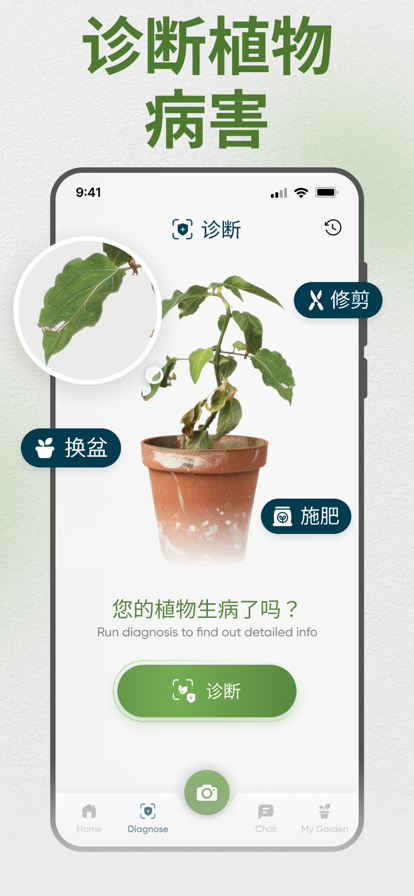 探索植物病害识别器应用程序。 您是植物爱好者、园艺爱好者,还是想要健康、茂盛的植物的人?查看我们的植物病害识别器应用程序,它是满足您所有植物护理需求的完美工具。 识别植物,准确率高达 99% 再也不用问“这是什么植物?”。借助我们的人工智能植物识别器,您只需一张照片即可轻松识别植物、树木、花卉、杂草和多肉植物。 诊断植物病害 您的植物是否出现疾病迹象?我们的植物病害识别器可以诊断植物病害,准确率高达 99%。使用植物诊断功能找出您的植物出了什么问题。该应用程序提供有关每种疾病、其原因和治疗方法(化学、生物或机械)的详细信息。 跟踪植物健康状况 使用我们的植物历史功能提前发现植物问题。拍照并跟踪随时间的变化。尽早发现问题并在问题变得严重之前解决它们。 用于植物和疾病识别的大型数据库 我们的应用程序不仅是植物识别器,也是昆虫识别器。了解可能危害您植物的不同昆虫并获得管理技巧。 立即下载植物疾病识别器应用程序并改变您的植物护理程序。无论您是经验丰富的园丁还是初学者,此应用程序都是您进行植物识别、疾病诊断和护理的解决方案。 使用条款:https://plantdiseaseidentifier.com/terms 隐私政策:https://plantdiseaseidentifier.com/privac