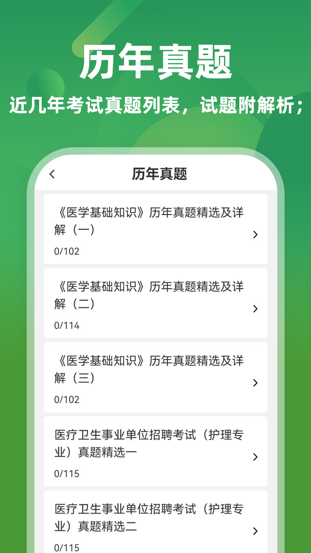 医学基础知识智题库是为医疗卫生系统公开招聘工作人员考试及E类事业编考试准备的题库APP,根医疗卫生事业单位招聘考试教材大纲编排而成,医学基础考试题库涵盖了护理基础、药理学、基础护理学、医学三基、基础知识、押题密卷、智能组卷、章节练习,历年真题,预测试卷等医学考试题库,全面囊括进基础护理学的易考考点,在复习过程中查漏补缺,掌握医学基础知识题库的重点、难点,提高考生的综合分析能力、拓宽知识面。<br><br>【产品特色】<br>【基础知识】按章节练习,随时随地练习,刷题便捷,每道试题附解析;<br>【专项练习】针对性练习,助你早日通关;<br>【历年真题】近几年真题,试题附解析;<br>【精品课程】名师精讲,考点难点尽在掌握;<br>【考点押题】高频考点+高频易错,高频题库助你快速吃通考点,举一反三;<br>【押题密卷】考点、重点、难点一网打尽;<br>【智能组卷】模拟考试,模拟实战考试练习;<br>【操作简单】 操作简单,刷题便捷;<br>【错题库】错题加入收藏,反复练习;