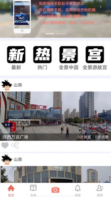 快速拍摄全景图片,便捷分享精彩瞬间。 功能: . 全景拍摄,保持手机竖直,点击即可开始拍摄; . 快速拼接,快速生成360度全景图片; . 超高分辨率;分辨率更大更清晰; . 快速上传并分享到微博、微信、QQ等社交平台; 全景拍摄要点: - 拍摄过程保持手机竖直状态,避免手机倾斜; - 点击屏幕开始拍摄,向右旋转手机根据界面提示继续拍摄; - 手机横放结束拍摄;应用自动合成全景图片; - 点击分享将拍摄的全景分享给您的朋友;