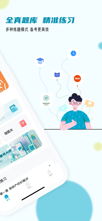 房地产经纪人题库提供房地产经纪专业人员职业资格考试题库,包括:《房地产交易制度政策》、《房地产经纪职业导论》《房地产经纪专业基础》、《房地产经纪业务操作》,覆盖教材大纲,含章节练习+历年真题+模拟押题+错题库。 【章节练习】按章节练习,试题附解析; 【历年真题】全科目最近几年考试真题; 【摸拟押题】摸拟押题,智能组卷,检验复习效果; 【模拟考场】100%模拟考场,快速冲刺; 【错题库】错题加入收藏,针对性练习;