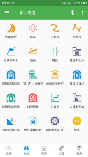 测量员是一款运行在智能手机上的测量应用程序,具有计算精确、轻松高效、智能便捷的特点。测量员可以应用在道路、桥梁、铁路、隧道、地铁、市政等工程中,除隧道、地铁工程的功能外的,其他工程的功能都是免费的,联机测量功能同样免费。软件在基本的计算方面稳定又准确,支持一下特性: 可以建立多条线路,相互独立,快捷切换。 支持断链,包括长链、短链。 支持交点法和线元法两种平曲线输入方式,支持各种线形的线路,如匝道、卵形曲线、回头曲线、S形曲线。支持多种平曲线计算方法,例如常用计算展开式(6项)、高斯5节点积分等。 竖曲线不但支持变坡点,同时支持折线点,适用性更广。 标准横断面采取板块概念,每个板块有独立的超高、加宽,适用性强。超高、加宽有多种渐变方式:线性、三次抛物线、四次抛物线。 隧道断面和边坡断面支持直接导入CAD断面图,减去编辑断面的复杂和烦恼。 支持地铁隧中偏移 支持隧道随超高全段旋转和局部横坡段旋转。 支持联机全站仪测量,高效、省时、轻松。目前支持的仪器有:徕卡、拓普康、南方、索佳、三鼎、苏一光、宾得、中纬、科力达、尼康、科维、博飞、瑞得、中海达。 支持任意里程、任意偏距、任意夹角计算坐标。 坐标反算桩号,支持复杂线路中多解的计算,无需输入附近里程,算法完备。 支持图形化放样,更直观、更容易检查错误。 支持批量计算并导出为Excel、TXT。 支持记录功能,可以将放样记录导出为Excel、TXT。 支持隧道断面扫描导出CAD图,代替断面扫描仪,任意点设站,无需电脑后处理,手机直接生产CAD图。 支持涵洞、桩基等结构物计算。 有简易、高级坐标正反算工具。 支持导入轻松测量系统的参数。