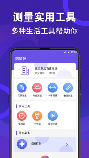 远处的高楼怎么测?没有尺子临时想测下孩子的身高怎么办?家里的沙发飘窗多大……日常生活中总是会碰到这样的问题,没有尺子、没有量角器就难倒你了吗?测量员测距尺子来帮你,无论是身高测量、距离测量、水平测量、长度测量、角度测量还是实景测量,通通不在话下。 【多功能测量工具】智能精准多功能测量尺子,只需三步就能测出物体的高度,输入身高,靶心对准物体底部按下,靶心对准物体顶部按下,就能测量出实景物体高度。测身高、量尺寸、还有长度,直尺刻度尺测量、水平仪、量角器等实用工具,操作便捷,方便简单。 【噪音测试】室内噪音分贝测试,打开手机就能知道你所处环境的噪音分贝情况,想看看家里加湿器的噪音,那就打开手机测量吧 【挂画校准】怎么挂画不歪,只需将虚线对齐画框顶部,移动画框即可,挂画校准居家必备工具。 【户外助手】户外指南针、手电筒野外徒步探险、户外定向越野、溯溪登山、野外露营、极限运动、户外勘探、线路规划的极佳工具,只要打开手机,就能解决户外问题。