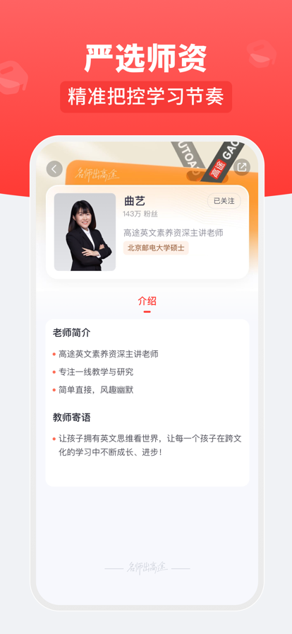 【公司简介】 猿辅导,作为科技领先的在线教育平台,提供全学段在线辅导和系列图书产品。 利用海量学生学习行为数据库反哺教学教研,打造专属个性化学习报告,借助大数据实现规模化因材施教,并以互动课堂增强学生沉浸体验,让学生在家就能享受优质教育。 【课程类型】 猿辅导,提供全学段多科在线互动教学,沉浸体验,以科技助力教育。 猿辅导系统班:针对全学段重难点全面辅导。紧跟学校教学进度,分春、秋两季同步强化学习。 【功能特色】 支持手机、电脑、iPad上课,在家就能与老师互动。 课堂伴读,双重关注,学习报告即时了解学习情况。 课程结束后支持离线下载,三年内无限次回放。 【联系我们】 客服电话:400-078-9100(周一至周日8:00-21:00)
