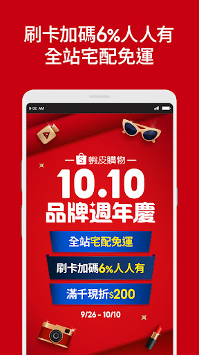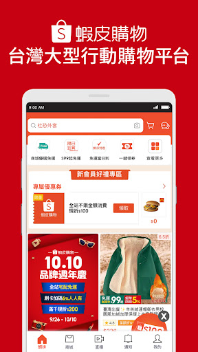 虾皮 10.10 品牌周年庆热烈开跑! 9/26 - 10/10 一起上虾皮买买买!全站免运无限次别错过,宅配满 $490 起即享免运,再加码超商免运券,网购再也不必担心运费,立即上虾皮 10.10 品牌周年庆带走喜欢的商品!<br><br>虾皮 10.10 品牌周年庆优惠下杀毫不手软,各种优惠券等你拿,满千现折 $200!虾皮 10.10 品牌周年庆刷卡加码 6% 回馈,加上信用卡专属全站优惠券,让你买愈多省愈多!最佳的购物体验就在虾皮 10.10 品牌周年庆,一起到虾皮购物吧!<br><br>虾皮购物为东南亚及台湾最大的线上购物平台及行动购物 App,提供您值得信赖的支付机制、物流服务,以及友善的操作介面,让您随时随地都能轻松享受购物的乐趣、简单地经营属于自己的卖场!<br><br>全新推出虾皮商城三大保障,正品保障、虾皮安心退、15 天鉴赏期,各式物超所值的商城商品,让您花得更少,买得更好!虾皮购物更提供多种安全可靠的付款方式,包含银行转帐、信用卡线上交易、货到付款、虾皮钱包,和街口支付等多元行动支付管道,交易介面友善好上手,买东西就是如此快速便利。<br><br>还没使用过虾皮购物的您,虾皮为您准备好了专属礼物,下载虾皮 APP 就能获取。不仅有全站 $100 优惠券,更有多样礼物任您挑选,快来领取为您准备好的礼物吧!下载虾皮 APP 一起探索虾皮所提供的不同服务,各式购物需求皆能满足。<br><br>网购总是担心运费?虾皮无限免运人人有!店到店即享有无限次免运服务,让你网购不必担心运费。还在等什么?下载虾皮购物即刻享受虾皮免运吃到饱!<br><br>在虾皮,让您万家商店一次逛足,满足您的各式购物需求,无论是生活必需品、美食伴手礼、饮料饮品、3C 家电、美妆保健、母婴用品等,各种优惠与折扣让你无痛入手所需商品,更能享有多种贴心服务与购物新感受!<br><br>虾皮直播让您即时与卖家互动,了解最完整的商品资讯,更提供您多样专属优惠。除了领取虾币,月月1、17号虾皮直播日再提供您直播优惠,立即上虾皮直播感受最丰富的购物体验。<br><br>虾皮超市给您线上购买日常生活用品及生鲜蔬果杂货的新选择,24 小时全年无休,生活补货立即购,日用品、清洁保养、生鲜熟食、休闲零食、饮料饮品等通通有,不必担心出门人挤人或是拿不动,虾皮超市帮您一键送到家!专属优惠券天天领,让您买得便宜又安心。<br><br>SHOPEE PREMIUM 提供官方经营的专柜品牌,原厂直送正品保障让人好放心。专柜大牌的热门商品在家网购就能拥有,自在又便利。还有 SHOPEE PREMIUM 优惠券供您使用,带走品牌商品不必心痛!<br><br>虾皮超便宜天天铜板价,各种生活小物从此不必再比价,虾皮直接给您超便宜的价格。每周三及周六再提供超便宜限量优惠券,让您省还要更省!<br><br>虾皮18号会员日,给您会员专属超值回馈;25号商城狂购节,让您尽享大牌优惠,还有各式主题日等您探索,月月三档惊喜无极限!<br><br>现在,一起到虾皮购物吧!<br><br><br>无时无刻随时随地,享受买卖东西的乐趣<br>• 浏览虾皮商城 - 网路商店包罗万象,虾皮承诺三大保障安心无虞<br>• 探索每日发现 - 量身推荐专属商品,精准推荐服务比您更懂自己<br>• 挖掘限时特卖 - 一天三档限时下杀,不用出国就能跟上世界潮流<br>• 观看虾皮直播 - 线上互动优惠放送,材质、颜色、款式一目了然<br>• 获取虾币奖励 - 每日签到获得虾币,全站消费可直接折抵好划算<br>• 选虾皮店到店 - 更多元寄取件选择,网购取货更便利运费更便宜<br>• 严选虾皮超市 - 全方位生活必需品,仅需一指轻松购免跑大卖场<br>• 下单虾皮直送 - 品牌夯品快速到货,领券折上折好省好快好放心<br><br><br>资讯透明安全放心、体验优质线上购物环境<br>• 完整透明的商品资讯 - 网路商店评价评论清楚公开,看图爬文网购不踩雷<br>• 安全可靠的付款制度 - 协助托管未完成的订单款项,买卖双方交易有保障<br>• 即时掌控的物流追踪 - 从付款资讯到包裹状态,系统随时更新通知不漏接<br><br>还有更多丰富内容与优质服务,将在不久的未来与虾皮用户见面!<br>-------------------<br>我们需要您的声音-谢谢您让我们变得更好!<br>官网介绍: www.shopee.tw<br>到我们的Facebook粉丝团按个赞: facebook.com/ShopeeTW<br>Youtube搜寻: SHOPEE Taiwan<br>在Instagram上追踪虾皮购物: @shopee_tw<br>搜寻LINE:@Shopee<br>地址:110台北市松山区烟厂路88号9F