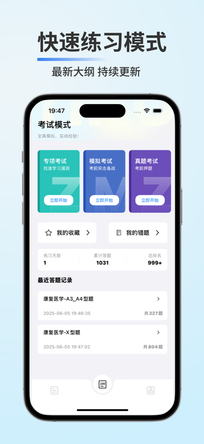 专为康复医学治疗技术考试设计的题库,提供了全方位的备考支持,每一道题目都附有详细的答案解析,帮助考生进行系统的复习。无论身处何地,都能随时随地进行学习和练习,且兼容手机、平板等多设备使用。 【题库介绍】 产品特点 ①更新迅速,紧跟最新考试大纲和教材调整; ②题量丰富,涵盖历年真题、章节练习和模拟题; ③考点全面,部分题目附有视频讲解,重点难点随时学习; ④解析深入,通俗易懂,帮助理解; ⑤错题自动归档,优质题目可手动收藏,帮助查漏补缺; ⑥提供错题分析,智能生成个性化试题,强化薄弱环节。 让你专注于学习本身。无论是利用碎片化时间还是安排系统的学习时段能为你提供高质量的支持,助力你考试中取得优异成绩。