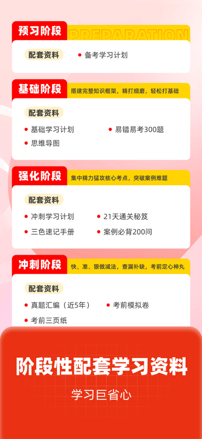 觉晓法考app是一款数据化、智能化的法考学习平台,从智能题库、优质课程、个性化计划、过考诊断、记忆速记全覆盖,解决听、学、记、测、评等一系列学习过程中的问题,高效助力备考。 觉晓技术团队荣获2022年CAIL(Challenge of AI in Law)中国法律智能技术评测大赛-司法考试赛道冠军,2023年CAIL中国法律智能技术评测大赛-司法大模型赛道冠军,推动自然语言处理、智能信息检索等人工智能技术在法律领域的应用,促进中国法律智能技术的创新发展,为科技赋能社会治理作出贡献。 在高精尖技术团队的支撑下,觉晓法考app可以做到不断智能化、精细化地迭代,从而实打实为考生节省时间,提高备考质量。 一、海量优质法考题库,搭配AI智能批改助你快速扫盲 ①收录近二十年的法考、法考题目及觉晓内部编写模拟题,其中主观题题库搭载AI智能批改功能,即做即改,批改正确率达95%以上; ②创新研发知识图谱功能,定位薄弱点进行针对性复习与出题,提高刷题效率; ③1:1还原官方模考系统,每月定期举办模考大赛检验学习成果,熟悉机考系统; ④专属错题本,错题通通收录,支持刷错题及导出; ⑤法考速记本,专门针对记忆科目设计,利用零碎时间攻破记忆难关。 二、优质课程在线学习,课程精简高效且应试 ①内部班精品课程任意听,知识点随时巩固; ②智能小窗播放,听课、看讲义、做题各不耽误; ③精心配置课后题,学完马上练习,精简更应试,拒绝无用功。 三、创新研发“过考模型”,科学量化学习目标,明确复习质量,让“差一分”的遗憾不再有。 分析测算上百万考生的学习数据,从上百个核心纬度建立“过考模型”算法,根据个人学习数据和过考模型匹配,既可以预测分数,也可做个性化学习推荐,在备考过程中都可以明确看到自己的薄弱点并匹配提升方案。 四、知识图谱助力,将学习分为理解、刷题、背诵三个阶段,提升备考效率。 ①理解:样版题检测你的理解是否达标,数据+科技揭开过线秘密! ②刷题:覆盖2000个考点的丰富题库,全真模拟实战演练! ③背诵:抽问式背诵+速记本+磨耳朵,背诵不再是问题!
