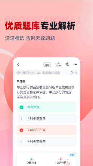 行政执法考试题库APP是专门为参加行政执法考试的人量身打造的APP,考生可以通过首页的多种做题模式,在线做题复习,帮助熟悉各种考试题型,快速高效的掌握考试答题技巧,帮助轻松应对各种考试试题,提高考试通过几率! 行政执法考试题库APP的主要特点: 1、一站式备考题库,试题随意刷 有每日一练、模拟考场、考点练习、顺序练习、题型专练等多种学习与做题模式,可以让你尽情刷题备考,提高复习效率。学习报告功能,科学掌握学习情况,了解自身备考水平,及时查漏补缺。 2、一键搜题,难题全搞定 可以直接一键拍照搜题,快速准确解决难题,同时也可以根据使用场景,选择文字、语音、悬浮窗等方式搜题找答案,帮助大家攻克各种难题。
