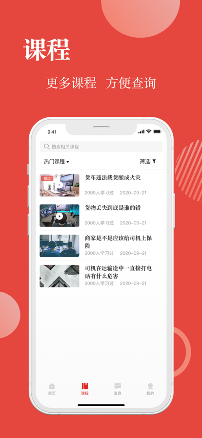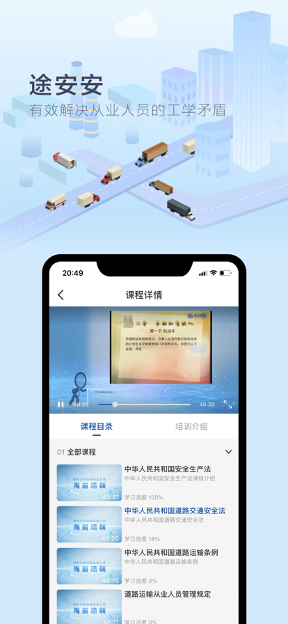 是一款针对交通运输企业和员工在线学习交通系列课程的平台,它是集学习、考核、评测为一体的应用软件,专注于提高运输企业驾驶员的驾驶水平,改善驾驶员不良驾驶习惯,致力于企业员工职业发展和自我提升需要。