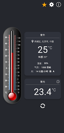 使用全面而准确的 Thermometer 室内温度测量工具,随时随地获取准确、实时的天气数据。<br><br>该应用程序提供了多种功能来测量室外温度,还可以通过地理定位和传感器测量室内和表观温度、湿度水平和大气压力,从而提供可靠的数据。<br><br>您还可以同时记录和比较不同地点的温度,了解您居住地、您所爱的人以及您下一个旅行目的地的天气预报。<br><br>无论您身在何处,都可以使用自动地理围栏获取您所在位置的高度准确的室外空气温度。如果您不想授权地理定位,也可以手动输入您希望了解室外温度的城市。<br><br>借助我们的人工智能工具,还可以直接使用手机的传感器获取环境温度。<br><br>感谢温度计应用程序,从 OpenWeatherMap 获得精确数据,让您自信地计划您的户外活动。<br><br>该应用程序可通过多种背景和单位(摄氏度或华氏度)选项进行自定义,让您可以根据自己的喜好自定义显示。它适用于所有类型的手机和平板电脑,并被翻译成您的语言,以提供独特而舒适的用户体验。<br><br>不要再让天气给您带来惊喜,立即下载温度计应用程序!<br><br>分享,评分和评论!