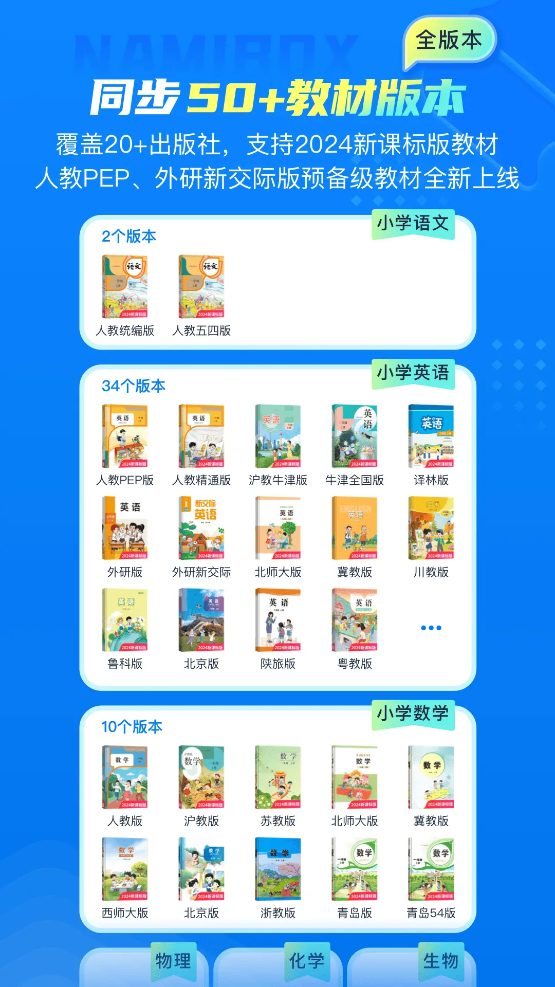 纳米盒,一款面向中小学生的课本同步闯关学的APP,覆盖语文、数学、英语、物理、化学、生物六大学科。1:1同步全国主流教材,科学设计每一课学习路径和学习内容,一站式搞定孩子预习、复习、练习、培优所有学习场景,帮助学生建立系统的知识体系,提升综合能力与自主学习能力。 【语文、英语点读课本】 覆盖2025年新课标版本教材,标准发音,功能强大,孩子自主学习,哪里不会点哪里。 内容介绍: 语文、英语点读课本,覆盖人教版(含预备级)、沪教版、译林版、冀教版、北师大版、外研版(含新标准、Join、预备级)、陕旅版等50+教材版本;新增鲁教版、大同版教材,100%同步课本。课文生字、听写等十余种功能,帮助孩子支持点读、复读、连读、翻译、跟读评测、智能背诵、听课文(正版音频)、纠正发音,认识生字词,自信流利说英语。 【语数英物化生同步AI互动课】 每个单元5-10节满分精讲同步AI互动视频课,AI数字老师,分组PK互动答题,每节课5-10分钟,讲透一个重难点。 【同步精准练】 根据每一课的知识重点,设置一课一练的课课练,让孩子快速刷题,扫清知识盲点;以及一周一测的同步单元测,一键打印,扫码看解析,做好单元总复习。 【语数英同步学教辅和预复习笔记】 5000+语数英同步学教辅,可部分代替纸质教辅书,减少纸质教辅书购买量,提升自主学习力。 同时覆盖预习、复习、巩固、培优等孩子课后在家学习场景,减少家长辅导课业负担,一站式解决学习问题,学习更系统、更专注。 内容介绍: 语文:课本预习(本节课的新知识梳理、难点攻克、拓展知识)、学霸笔记(用学霸的方法复习,包括课文详解、内容梳理、习题精讲)、课文生字(汉字笔顺、组词)、词语听写(解放家长,自主听写)、学作文,知识清单、同步字帖、默写本。 英语:课本预习(本节课的单词、句式梳理、难点攻克、拓展知识)、学霸笔记(用学霸的方法复习,包括句型、语法的详解、在线练习巩固)、练听力(20+种题型难度递进)、练语法(9000+练习攻克重难点)练阅读、词汇详解、知识清单,还有描红本、默写本。 数学:教材知识例题详解、教材母题变式、攻克易错题、学口算、同步计算题练习、应用题真题练习、单元知识清单、思维导图笔记、同步单元测,支持一键打印。 语数英拓展学:国际音标、情景口语、必背单词1000个、必背古诗词、晚读美文、句子宝典、数学思维故事等5000+智能教辅,等你来探索! 【课外阅读-有声名著】 精选中小学语文教材,《快乐读书吧》栏目指定阅读书目,包括四大名著、经典寓言、神话故事等200万字多媒体课外有声读物,按年级推荐,支持有声点读,图文并茂,激发阅读兴趣,养成良好的阅读习惯。 【纳米盒培优打卡营】 国际音标、自然拼读、小学英语、小古文等学习打卡营,系统监督学习过程,全勤激励,孩子自主学习,进步看得见,无需家长监督,解放家长更放心。 【教辅练习册云打印服务】 纳米盒同步教辅练习册,支持一键打印、装订成册、包邮到家。包括《小学语数英同步单元测》《初中数学同步单元测》《小学数学口算天天练》《小学数学核心思维训练》《小学数学计算题和应用题专项精练》《小学数学应用题专项精练》《小学语文生字描红和看拼音写词语》《小学英语单词描红与汉英双向默写本》等。 【纳米盒荣誉】 荣获腾讯教育年度影响力在线教育品牌 荣获网易教育年度影响力在线教育品牌 荣获中国好教育家长信赖教辅品牌 获得上海市“高新技术成果转化证书”认定 成为上海“在线教育”细分专委会首批成员单位 如有任何疑问,请联系纳米盒客服 打开纳米盒APP,点击【账户-我的客服】进行反馈