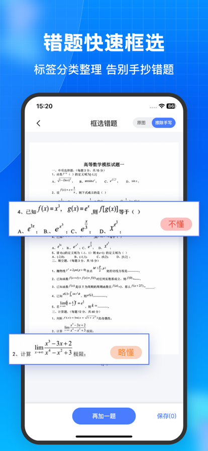 高效整理试卷和错题! 试卷擦除:自动清除笔迹,还原空白试卷 试卷整理:自动识别试卷边缘,裁剪杂乱背景 收集错题:框选错题后,可分学科储存 拍照解题:作业一拍,秒出详细解析 口算批改:计算器自动批改对错 同时支持好友间分享试卷,支持连接打印机,将以前的试卷和错题拿出来重新练习。 会员订阅: 订阅价格为每年98元、每月18元 订阅会自动续订,除非在当前期间结束前至少24小时关闭自动续订;帐户将在当前期间结束前24小时内收取续订费用,并确定续订费用 订阅可以由用户管理,并且可以在购买后转到用户的AppStore帐户设置来关闭自动续订 隐私条款:https://blog.csdn.net/2401_82596890/article/details/135931495 使用条款:https://blog.csdn.net/2401_82596890/article/details/135931598