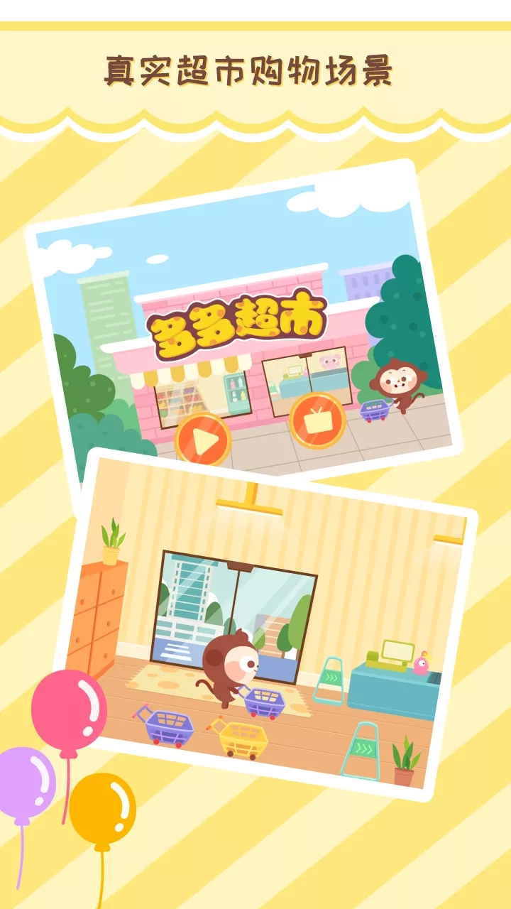 由儿歌多多团队精心打造,爸爸妈妈的好选择,小朋友都喜欢! 百万儿歌故事、动画绘本、手工画画、真人舞蹈……更多优选内容只为给孩子一个快乐的童年。 小朋友们,「多多超市」开业啦,快来看一看买一买吧! 水果、蔬菜、玩具、零食、饮料、蛋糕......琳琅满目的商品摆满了整个货架!东西好丰富吖! 多多超市模拟真实的超市购物场景,根据清单有目的购买所需商品,打造有趣超市购物体验,培养宝宝识别能力和辨别颜色、形状的能力。 小朋友们,一起来多多超市做一个选购小能手吧! 【真实场景】 9个真实超市购物区域:包含水果、蔬菜、蛋糕、零食、美食、饮料、文体、海鲜、玩具 【商品多样】 零食、玩具、水果、蔬菜......超过80种精美设计的商品 【清单购物】 宝宝需要根据购物清单购买所需的商品,培养宝宝识别形状和辨别颜色的能力,也锻炼小朋友的耐性 【趣味结账】 买完所有商品,别忘记结账奥!小朋友,要付多少钱呢,快帮多多算一算吧! 【购物奖励】 凭购物小票可以砸彩蛋抽奖奥!精美贴纸快到碗里来!可以装扮属于自己的精美贴纸相册哦! 【成长益智】 抓娃娃机、蛋糕装扮、鱼缸抓鱼......超多有趣益智项目,乐趣无穷! 好看又好吃,有趣又好玩,小朋友,快来开启多多超市购物之旅吧! 儿歌多多,宝妈宝爸的哄娃神器,千万家庭的小朋友都在使用,快乐童年不可缺失的好伴侣! 更推出多多救援队、多多医院、多多美食街、多多小警察、多多恐龙车、多多爱郊游……等亲子互动场景,让宝宝随时随地都能快快乐乐玩耍,轻轻松松掌握本领。