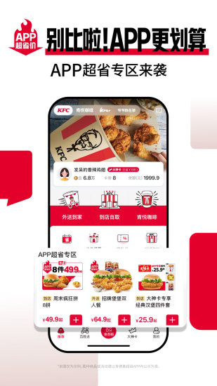 【肯德基超级APP】 丰富体验,WOW会员逛吃更尽兴! 划重点教你玩转6.22.0! 【发现优惠】 - 肯德基大神卡:开卡享正餐、咖啡、早餐、下午茶、满额免外送费,五大权益,全天随时省! - 疯狂星期四:每周四多款美味等你来,干饭人狂喜! - 周末疯狂拼:周末到店享8件49.9元! - 新人大礼包:新人首次注册或登录WOW会员享新人大礼包! 【我要好玩】 - 亲子乐园:来肯德基过生日吧!多款主题可选,好玩又好吃,还有惊喜生日礼送! - K-Music:点播喜欢的歌曲做背景音乐! 【我有异议】 在使用过程中如果遇到任何问题,欢迎联系我们,程序员小姐姐,客服小哥哥们坐等你来撩: - 肯德基官方微信:kfczhongguo - 肯德基宅急送官方微信:KFC_Delivery - 官方微博:肯德基 - 客服热线:4008-823-823