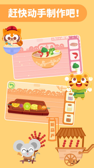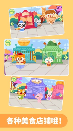 小朋友们,【多多美食街】正式开始营业了!好多中华传统美食在美食街都可以找到哦~ 面条、粽子、饺子、糖葫芦、元宵、月饼...哇哦!美食街竟然有这么多好吃的,快来一起品尝吧! 「多多美食街」模拟真实美食街街景文化,体验美食制作流程,品尝美味可口的美食,增强宝宝对传统美食的了解,培养宝宝的动手能力。小朋友们,速度集合了!一起来美食街做中华小当家吧! 产品特色 [身临其境的美食街景] 精细画面设计,精美角色设计,模拟真实美食街街景,弘扬中华传统美食! [丰富多彩的互动体验] 捏面团,包粽子,下饺子,串糖葫芦,闹元宵,吃月饼....多种让人欢乐开怀的制作过程 [真实的美食制作流程] 宝宝可以根据游戏中的制作环节,亲自动手体验美食制作流程,培养宝宝的认知及动手能力,同时让宝宝明白食物制作不易,应该珍惜粮食 [专业精美的动画设计] 美食做好了,甜的、酸的、辣的,各种口味,快来喂给小动物们吃吧,小动物还会出现意想不到的动作回馈奥! [生动有趣的动画配音] 专业配音团队,带给宝宝更好的产品体验 好看又好吃,有趣又涨知识的美食街之旅,小朋友,快来一起做个小小美食家吧!