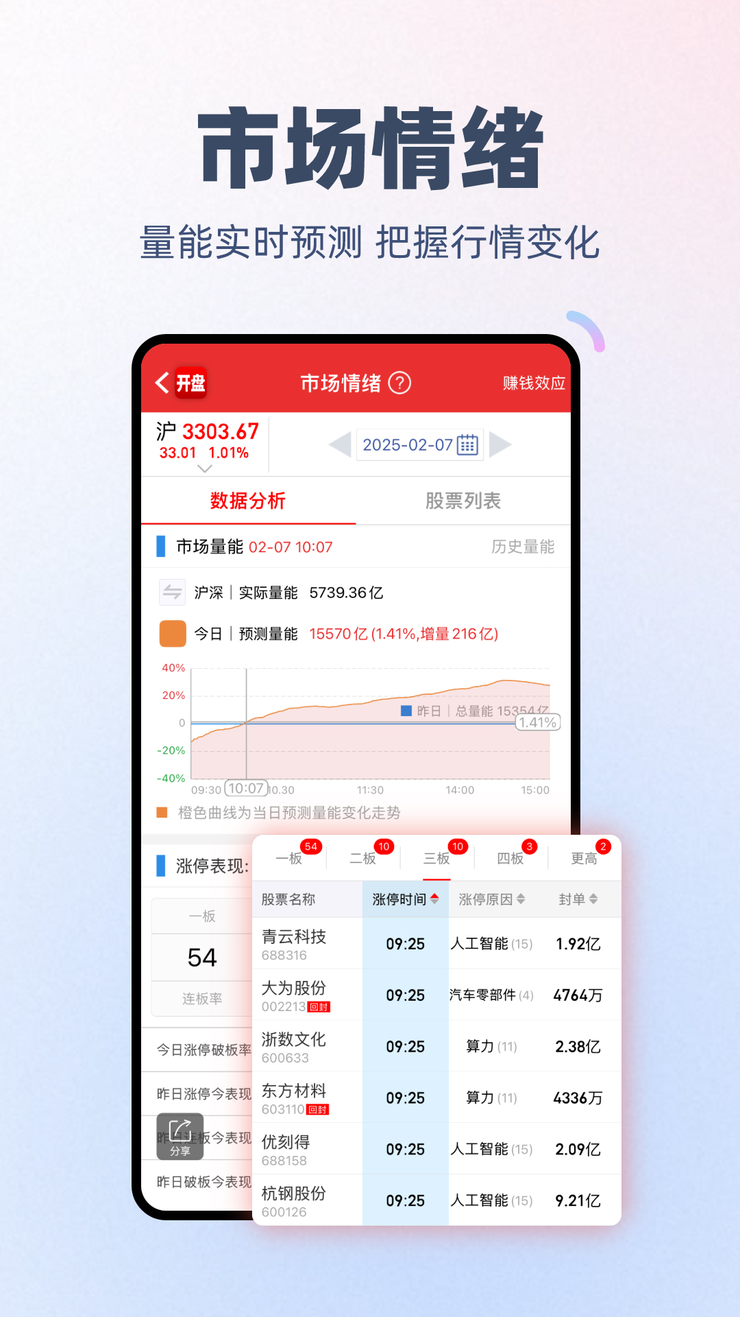 【专业、省时、高效的炒股票软件】 开盘啦,紧跟金融市场投资风格,打造一站式股票平台,从股市资讯挖掘股市热点,结合股市走势深入股票分析,全程提供客观的沪深行情数据。在博弈激烈的股票市场,是新手炒股入门、高手进阶必备的免费掌上证券 理财 股票工具。 【特色炒股功能】 明天炒什么:每日炒作风向标,大数据总结热门股市资讯,自动关联板块与个股; 题材库:题材爆发迅速响应,快速掌握炒作逻辑,小表格一图梳理题材相关产业链,方便收藏与分享; 竞价系统:打板模式利器。早盘竞价、板块竞价、竞价涨停委买等股票工具,实时竞价数据,综合资金、人气、题材进行多维股票分析,快速了解主力资金态度; 板块强度:开盘啦特色指标,由专业研究员精选概念组合,更贴合实际,结合板块权重表现与涨停数量,直观展示板块强度排行,准确把握每日股市炒作重心; 实时龙虎榜:实时监控主力资金动向,自由拖动时间轴、自定义时段,查看股票行情数据,资金布局轻松掌握; 市场情绪:实时跟踪、预测沪深两市量能,准确把握市场变盘节点。综合涨跌家数、涨停表现、大幅回撤以及权重表现综合评定沪深股市当前状态; 大盘直播:实时捕捉股市盘面重点信息,把握行情关键节点信号,展现盘面情绪、题材、个股之间的强弱变化,轻松掌握股市走势,减轻看盘负担; 复盘啦:当日盘面亮点梳理,亏钱效应提示,各板块核心个股整合,市场炒作高度梯队排列。功能在手,复盘无忧; 深度龙虎榜:全面的主力研究、游资解密,挖掘市场资金合力。关联个股协同操作营业部,设置特色标签、组合,如六一中路、方新侠、赵老哥、上海超短、炒股养家、作手新一、小鳄鱼等50多个官方组合一键订阅,还能自定义组合,高效追踪市场主力。评论区股票交流互动,更有游资大佬参与; 区间统计:特色时间轴,行情区间统计随意拉动,强势板块、阶段牛股无处遁形,股市走势一览无余; 功能介绍:开盘啦功能教程集合,案例百科包含超短情绪、题材挖掘、趋势波段、股东牛散,给你使用灵感。用好开盘啦,走遍股市都不怕。 开盘啦股票软件凭借过硬的实力和创新能力,在同花顺、东方财富、通达信等众多金融理财股市软件中杀出一条血路,与财联社同类新媒体共同进步,感谢一直信任支持我们的各位投资者,希望开盘啦会一直是您心仪的股票软件。 让我们共享股市,一起开盘啦! 【联系我们】 如果您对软件有任何建议和意见,欢迎与我们联系,感谢支持! 官网:https://www.kaipanla.com/ 微信公众号:开盘啦APP(kaipanlaapp) 微博:开盘啦APP官微 https://weibo.com/u/6609702412 QQ(小虎君):1808991075 QQ(小龙君):2448625142 投资有风险,入市需谨慎!
