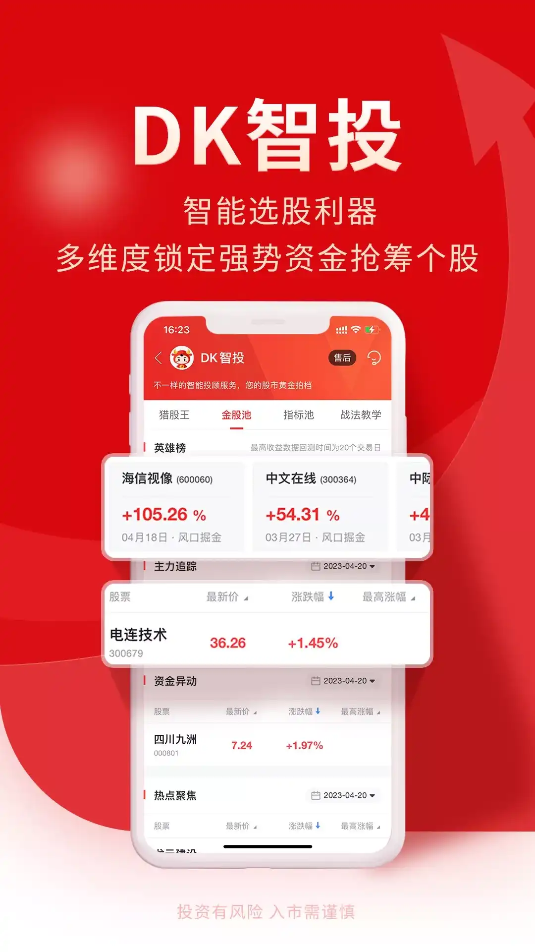 牛股王 — 让投资更简单 —————核心服务————— 【全市场行情资讯】A股、港美股、基金等全市场覆盖; 【低佣金开户交易】知名券商深度合作,7*24小时服务; 【五大趋势指标】直观交易信号,助您轻松应对市场变化; 【七大量化数据】多维度股票量化数据,助您高效决策; 【特色金股池】 抓市场龙头,聚强势风口,抢热点机会; 【智能日内交易】自动捕捉日内交易机会,增厚收益; 【云端条件单】无需盯盘,交易条件触发后云端自动执行。 —————典型用户评价————— “每天必看热点概念、热门板块、各类涨幅榜单,追踪A股、港股、美股的新闻资讯热点,这里的DK金股池帮我更快决策选择更快选股!” ——by 短线我强 “牛股王提供百万资金模拟炒股,还能免费查看牛人操盘记录,随时和牛人交流互动,名副其实的炒股利器” ——by 涨停小王子 免责声明:**投资有风险,请谨慎投资** 对于产品如有任何疑问和建议,请与我们联系 官方网站:https://www.stockhn.com 客服电话:400-625-5268