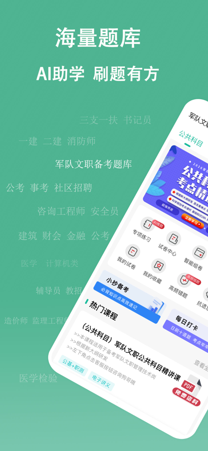 中公教育官方综合服务平台 中公教育是大型的多品类职业教育机构,主营业务横跨招录考试培训、学历提升和职业能力培训等3大板块,提供超过100个品类的综合职业就业培训服务。中公教育始终坚持“学员的事是最重要的事”这一服务理念,不断提升教学能力和服务水准,致力于为学员提供更完善、更优质的职业培训。 【中公甄选 精品好课】 中公大咖直播,随报随学,低至0元!更有智学行测、巧学申论、趣谈公基,思路拆解、大话面试、备考手册等系列可供选择,备考路上,你永不独行。 【模考刷题 详尽解析】 这里的每一道题目,都是历经千帆!具有丰富教学经验与深厚研发积淀的中公核心名师团队,为各考试项目分别定制习题与模考试卷,让考生通过刷题巩固基础知识,培养解题思路,告别盲目题海,专注高效提升。 【学员服务 与师俱进】 众多资深教师及专家研发服务资料,考点深入浅出;专属师资随时纠正点评,准确了解当前学习问题;充分利用时间碎片,随时学习,随时收获。 【动态档案 科学指导】 你的点滴进步,我们统统知道!中公教育学员管理系统,通过学习路径,听课记录、做题进度、错题分布等,充分掌握备考情况,动态分析科学备考,定制成长方案与学习报告,更知己知彼。 关注我们新浪微博:中公教育 全国统一咨询专线:400-6300-999