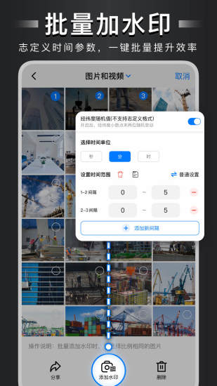 真正完全免费的水印相机!拒绝会员充值,0付费! 时间水印相机打卡,精准定位,高效工作打卡拍照。支持工作考勤打卡水印相机,工程水印相机自定义水印功能,工作时间地点、经纬度、海波水印记录。超高清拍照和视频水印录制,水印记录更清晰真实,满足外勤工作定位打卡的一切拍照需求。 【水印相机免费】 完全免费的专业水印相机拍照打卡,水印时间水印相机、时间地点相机水印、工程水印相机自定义水印。 【自定义水印相机】 丰富的相机水印模板,满足日常考勤定位打卡,工程记录水印相机、现场拍照,工作时间记录、外勤工作拍照等需求。 【工程水印相机】 工程相机水印记录,工程时间地点进度情况,工程施工、监理人员水印等自定义水印编辑功能,让工程记录更加专业。 【拍照打卡拼图】 拍照水印图片灵活拼图,丰富拼图模板编辑,一键分享工作群和项目组,完成高效水印打卡,更好反馈现场真实情况。