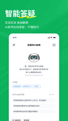 特岗教师考试备考刷题助手! 海量题库+AI助教+精准解析,三位一体备战特岗教师招聘考试~ AI助学焕新上线,章节刷题结合特岗教师招聘考试大纲,AI智能推题精准定位薄弱环节,结合艾宾浩斯遗忘曲线研发"21天抗遗忘训练",让知识点过目不忘! 特岗教师练题狗是考生专用的实现科目练习和模拟考试的手机端APP软件,集智能辅导、详细解析、AI解析、全真题库和考试考情于一身,涵盖了章节练习,历年真题,预测试卷,每个科目独立题库,刷题简单,节省复习时间,含有答题解析、错题巩固、统计分析、模拟考试等多功能模块,在复习过程中查漏补缺,提高您的综合分析能力、拓宽知识面。备考王牌APP! >>练习: 1.全真题库 精选特岗教师历年真题+海量高品质模拟题库; 2.详细解析 结合考试点,精细化逐题解析; 3.错题巩固 独特错题巩固机制,加深记忆真正掌握知识点; 4.AI解析拓展 每个题目新增AI解析拓展,帮助您全面了解知识点; 5.AI智能推题 个性化推送薄弱知识点+顽固错题+抗遗忘特训题; 6.学习资讯 备考资讯,官方通知,复习技巧尽在特岗教师练题狗。 【技术支持】鼎维云课堂 【联系我们】 微博:@练题狗 微信:liantigouapp 客服电话:+8618290463382 (工作日9:00-18:00)