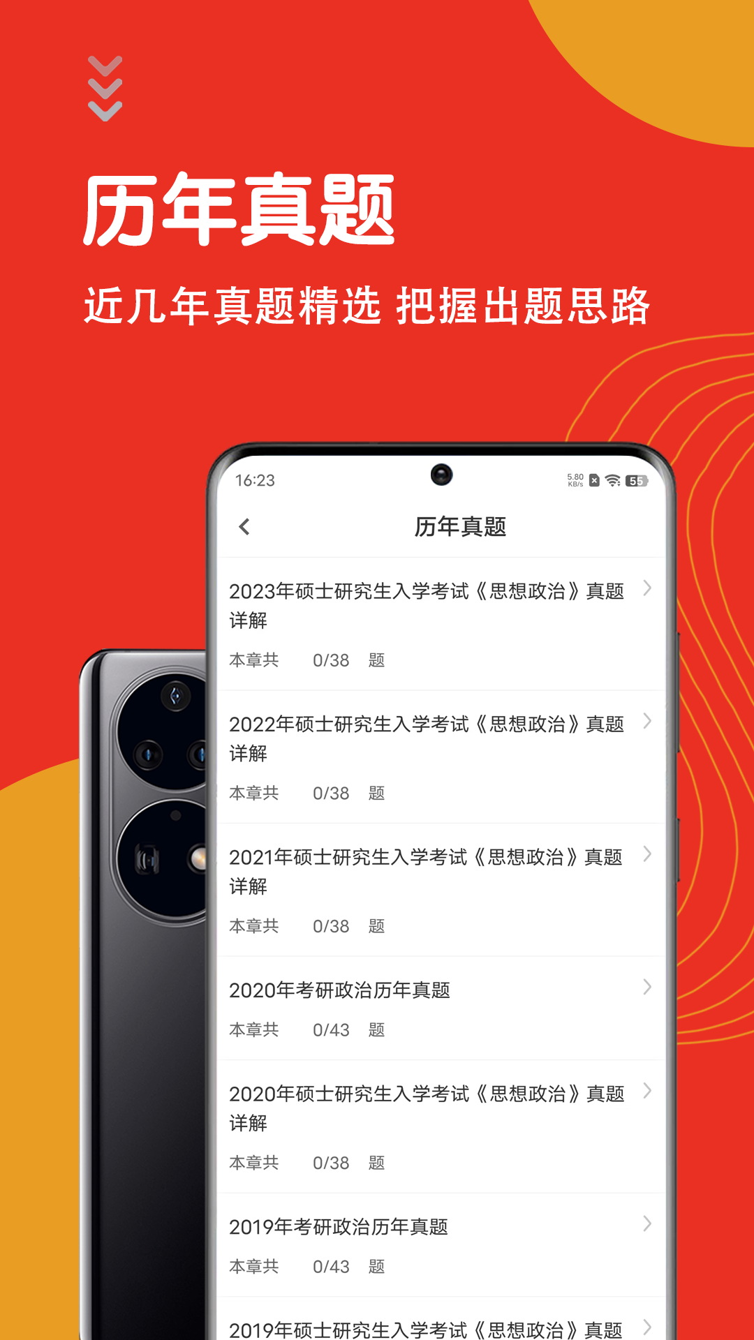 考研政治是一款专门为考研学子打造的政治学科类APP,APP内有历年的考研真题试卷以及答案解析,政治1000题,更科学的政治专项类练习:马克思主义基本原理(马哲)、毛泽东思想与中国特色社会主义理论体系概论(毛概)、中国近现代史纲要(史纲)、思想道德修养与法律基础(思修),必背的政治考点,持续更新的时事政治和时政热点新闻等等内容,是考研学子的上岸神器。<br><br>【功能介绍】<br> 1、章节练习:把握命题思路,根考试大纲,按考点划分;<br> 2、历年真题:近几年真题精选,答案附解析;<br> 3、高效刷题:操作简单、轻松学习,通关好助手;<br> 4、模拟考试:模拟练习,含解析,检测学习成果;<br> 5、错题库:错题自动收录,好题手动收藏,查漏补缺;