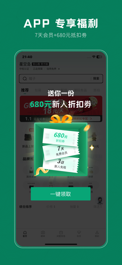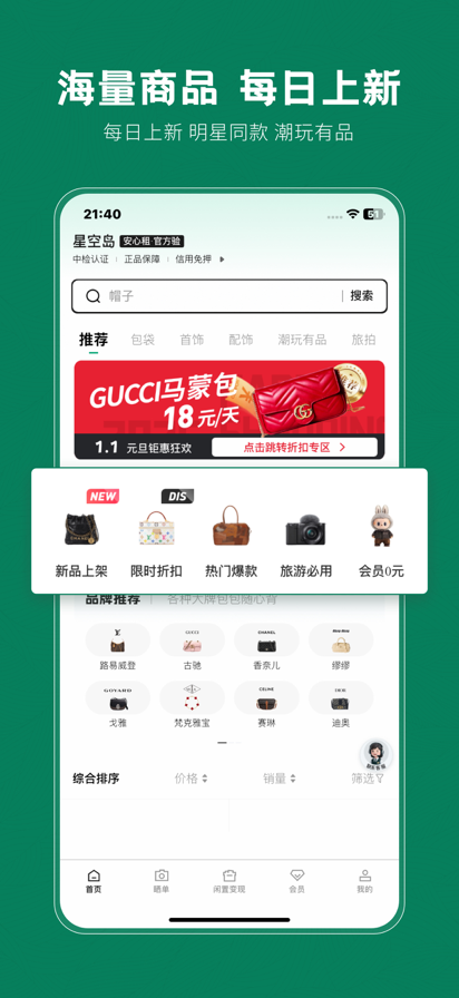 星空岛 —— 高端奢侈品租赁平台 租奢侈品,就上星空岛。星空岛专注高端奢侈品循环租用,以「租 - 用 - 还 - 租」可持续模式,打造轻奢生活租用生态,平台全程担保、敢租敢赔,让你轻松享受高品质生活。 ==主营品类== 箱包、首饰、配饰、墨镜、相机、美容仪等高端好物。 ==主营品类== 箱包、首饰、配饰、墨镜、相机、美容仪等高端好物覆盖品牌:LV、Gucci、Chanel、Dior、Hermès、Prada、Celine、Fendi、Balenciaga、Cartier、Tiffany、Bvlgari、Van Cleef & Arpels、Rolex、Omega、Canon、Sony、Fujifilm、雅萌、宙斯、Miracle K II 等 ==核心优势== 奢侈品专租轻奢箱包、精致首饰、时尚配饰、潮流墨镜、专业相机、高端美容仪,一站式满足轻奢租用需求。敢租敢赔・全程保障租前、租中、租后全流程兜底,安心租用,体验无忧。 新人专享・1 元租爆款大牌箱包、轻奢首饰、热门相机、美容仪等,新人可享1 元租福利。 官方严选・平台担保正品查验、品质保障,损坏可赔,租用更放心。 信用免押・灵活短租芝麻分 600 及以上,有机会押金全免,0 押金、月付无压力;支持 1 天起租,随租随还,只为使用买单,轻奢不费力。 同城闪租・即用即取就近匹配同城优质货源,紧急需求快速送达,便捷高效。 一键续租租期结束前,APP 内轻松续租,持续享用心仪好物。 【品牌理念】 以租代买,租享轻奢生活。 【官方渠道】 微博:星空岛 App 抖音:星空岛租包 小红书:星空岛租包 微信公众号:星空岛租包