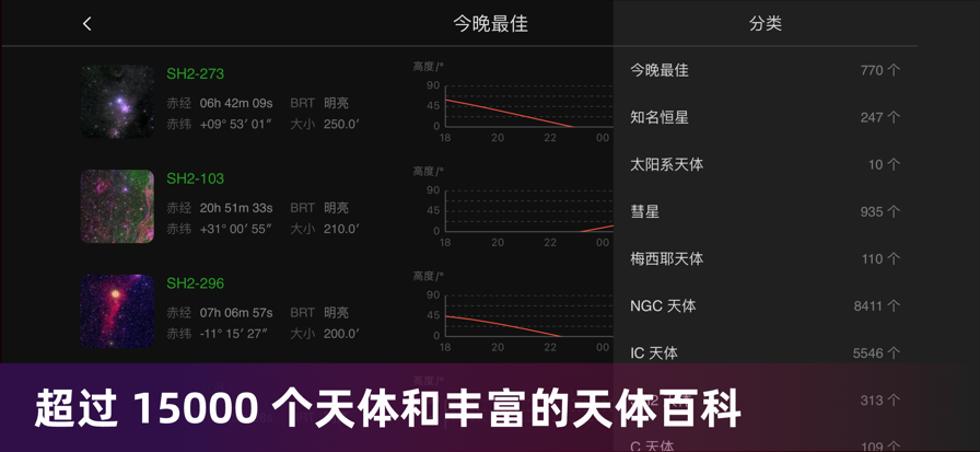 Stellarium Mobile是一款天文馆应用程式,能精确向您展示仰望星空时看到的一切。 只需将手机对准天空,即可在几秒钟内即时辨别出您头顶上星空中的恒星、星座、行星、彗星、卫星(如国际空间站)和其他深空天体! 这款天文应用程序易于使用且具有简约的用户界面,使其成为想要探索夜空的成人和儿童的最佳天文应用程序之一。 Stellarium Mobile功能: • 观看恒星与行星在任何日期、时间和位置的精确夜空模拟。 • 深入了解多种多样恒星、星云、星系、星团和其他深空天体的庞大系列。 • 放大逼真的「银河系」与「深空天体」影像。 • 选择众多天象文化中星座的形状和图解,探索地球上其他地区居住的人们看到的星星是什么样子。 • 追踪包括国际空间站在内的人造卫星。 • 透过逼真的日出、日落和大气折射来模拟景观和大气。 • 探索太阳系主要行星和其卫星的三维呈现。 • 在夜间模式(红色)下观察天空,以保持眼睛适应黑暗。 Stellarium Mobile免费行动版包含应用程式内购买功能,可升级到Stellarium Plus增强行动版。升级后,应用程式将显示22星等的昏暗天体(相对于基本版本中的 8 级),并启用进阶观察功能。 Stellarium Plus加强行动版功能(透过应用程式内购买解锁): • 深入了解庞大的恒星、星云、星系、星团和其他深空天体系列,触碰到知识的极限: - 所有已知恒星:Gaia DR2目录,超过16.9亿颗恒星 - 所有已知行星、天然卫星和彗星,以及许多其他小型太阳系天体(1万颗小行星) - 最著名的深空天体:超过200万个星云和星系的合并目录 • 几乎不受限制地放大深空天体和行星表面的高解析度影像。 • 使用「精简」资料集,在野外(甚至是没有网际网路通讯的场合)观察:200万颗恒星、200万颗深空天体、1万颗小行星。 • 通过 WIFI 控制您的望远镜:驱动任何兼容 NexStar、SynScan 或 LX200 协议的 GOTO 望远镜。 • 使用进阶观察工具准备观察活动,来预测天体的可观察性和中天时间。 Stellarium Mobile由Stellarium的原班人马打造,Stellarium是著名的开启来源天文馆,也是桌上型电脑上的最佳天文学应用程式之一。 您可以使用一次性付款或订阅来解锁全部功能。 有关您所在国家/地区的订阅价格,请参阅应用内购买部分。 付款将从您的 iTunes 帐户中扣除。 您的订阅将自动续订,除非在当前订阅期结束前 24 小时取消。 购买后转到您的帐户设置,可以随时关闭自动续订。 服务条款:https://stellarium-labs.com/stellarium-mobile-plus/stellarium-mobile-terms-of-use 隐私政策:https://www.stellarium-labs.com/privacy-policy-for-stellarium-mobile