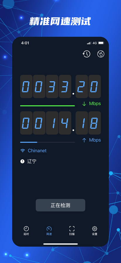 网速测试大师致力于为全球用户提供快速专业的网络测速服务。 网速测试大师,是您的手机管家,wifi管家,随时随地的测速专家 【全新工具】全新工具箱:Ping测试,跟踪路由。。。轻松解决任何网络问题 【一键测速】只需数秒,快速、准确获得网速测试结果 【全网测试】支持各大运营商测速;支持Wi-Fi测速、2G/3G/4G/5G的网络检测 【详细数据】详细展示测速结果:延迟、上传、下载、流量消耗、IP地址 【图表分析】单网络、多网络数据对比,全面了解网络情况 【Ping测试】游戏卡顿?专业Ping测试了解网络稳定性 【网络诊断】突然断网、连网却无法访问网页,一键诊断各种网络问题 【特色功能】5G测速、Ping 测试、游戏Ping、一键设备检测、蹭网检测。 网速测试大师,专业的网络测速、宽带测速,网速测试神器。 手机测网速有疑问,赶紧来用网速测试大师吧,轻轻一点即可全面了解您的网络连接状态。 成为你的移动网络,无线网络测试助手。