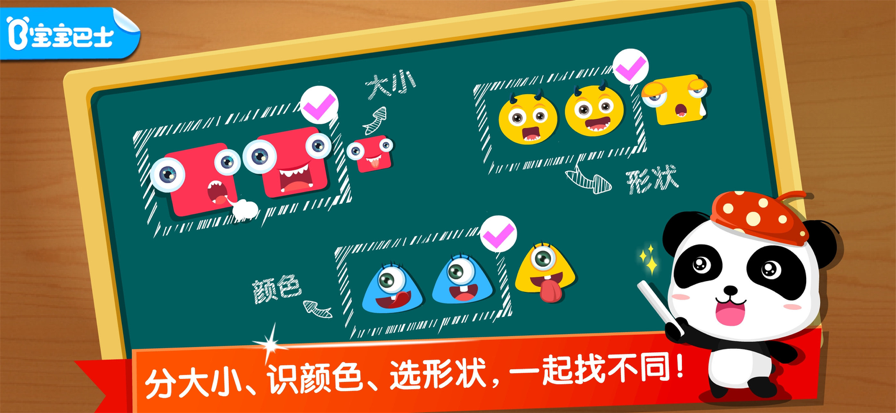 【玩分类】是一款让你根据实物不同的形状、颜色、大小等标准进行分类,通过趣味互动的形式来提高你的分类能力和观察力的App。 在【玩分类】App中,你可以进行丰富有趣的益智互动。 -找一找 这三个图案好像有什么不一样,快仔细观察,把TA找出来; -分一分 来比一比物体的大小,再把大的物体放一起吧; -连一连, 看看有哪些图案是相同的?试试把相同图案的配对连线吧! 丰富的益智互动,帮你学会如何分辨大小、识别颜色、挑选特殊的物体形状……还能考验你的观察力哦,快来找出物体的不同点,认知TA们的特征。 如果你还想体验更多互动内容,那就下载【玩分类】App看看吧! 产品特点: 1.三大模块:分一分,找一找,连一连,全方位锻炼用户的认知能力。 2.关卡循序渐进,难易得当,让用户一步步地见证自己能力的提升。 3.拟人化的卡通形象,配合趣味互动,吸引用户更有效率的学习,专注认知。 宝宝巴士(BabyBus)是专注打造儿童启蒙数字产品的原创品牌。宝宝巴士秉承“快乐启蒙”的理念,用奇妙有趣的方式,为儿童量身定制以“好听(国学故事)、好看(儿歌动画)、好玩(互动APP)”为特征的海量数字启蒙内容,让孩子趣味认知、感受“真、善、美”。 【宝宝巴士】儿童启蒙APP,包含宝宝巴士儿歌、宝宝巴士故事、宝宝巴士奇妙屋、宝宝巴士、宝宝恐龙家园、宝宝航海挑战、奇妙美味日记、奇妙生日派对、奇妙恐龙帮帮队、奇妙手工调色、奇妙艺术日记、宝宝爱自然、照顾小宝宝、中华美食、奇妙好习惯、宝宝地震安全、玩配对、宝宝运动会、奇妙调色屋、我爱水果蔬菜、恐龙乐园、奇妙超市、奇妙游乐园世界、奇妙认工程车、奇妙美食街、奇妙主题派对、奇妙医院、宝宝认蚂蚁、假日旅行、奇妙上厕所、大扫除、宝宝钓鱼、奇妙爱地球、奇妙飞行员、奇妙冒险王国、奇妙机场、奇妙快睡觉、奇妙懂礼貌、我爱吃饭、美食嘉年华、迷宫历险记、奇妙调色屋、奇妙小厨房、宝宝迷宫大作战、宝宝性别认知、小云朵旅行记、宝宝垃圾回收、宝宝过春节、宝宝居家安全、环保小宝宝、我是消防员、地震安全手册、会说话的奇奇、认天气、安慰小宝贝、DIY变废为宝、白天黑夜、奇妙认知百科、动物小牧场、森林美食、形状颜色大小、宝宝画妈妈猜、春夏秋冬、猜猜哪不对等APP。 欢迎联系 微博:@宝宝巴士 官网:https://app.babybus.com 邮箱:cn@babybus.com